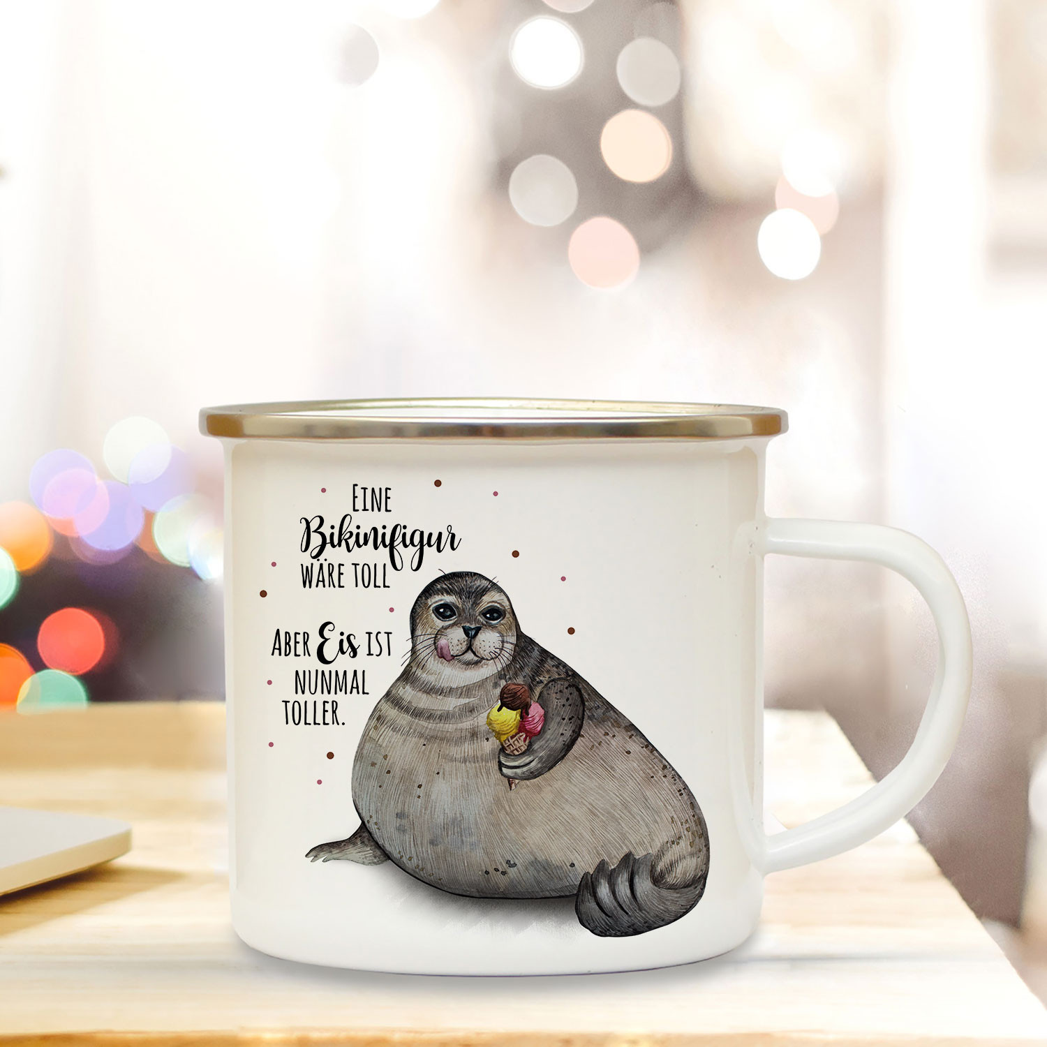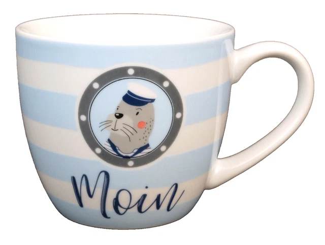Maritime Porzellan Becher Mit Seehund 2er Set - Moin Moin - Ebbe Flut - Inhalt 400ml Kaffeebecher Tasse Maritimes Motiv (1276