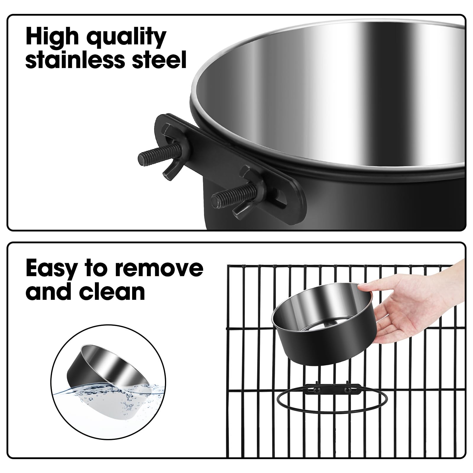 ShineMe Wassernapf Zum Aufhängen, Edelstahl, Futter- Und Wassernapf Für Hundekäfig, Kiste, Zwingernäpfe Montierbar Für Mittelgroße Und Kleine Hunde, Katzen, Haustiere (15,7 X 6,6 Cm Und 14 X 6,1 Cm