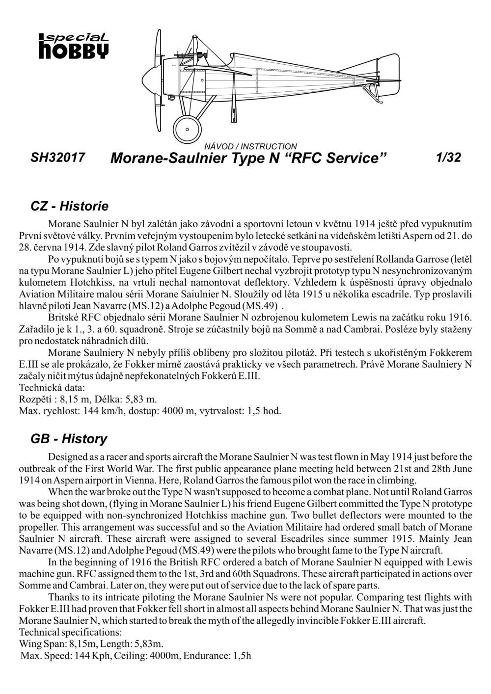 Unbekannt Special Hobby SH32017 - Morane-Saulnier Type N RFC