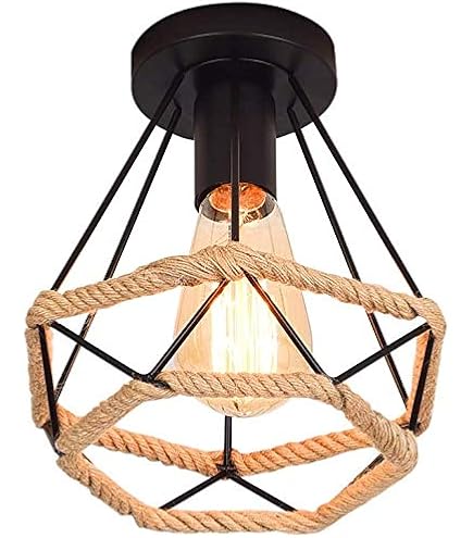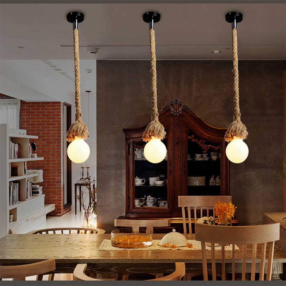 Mr.right Vintage Industriestil Pendelleuchte, Hanfseil Doppelkopf