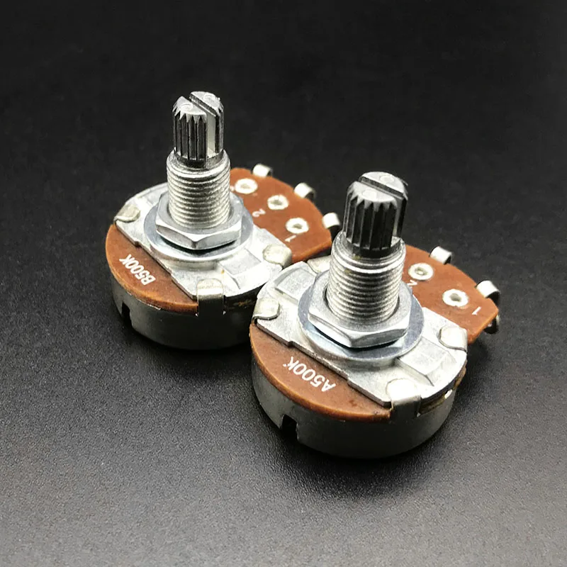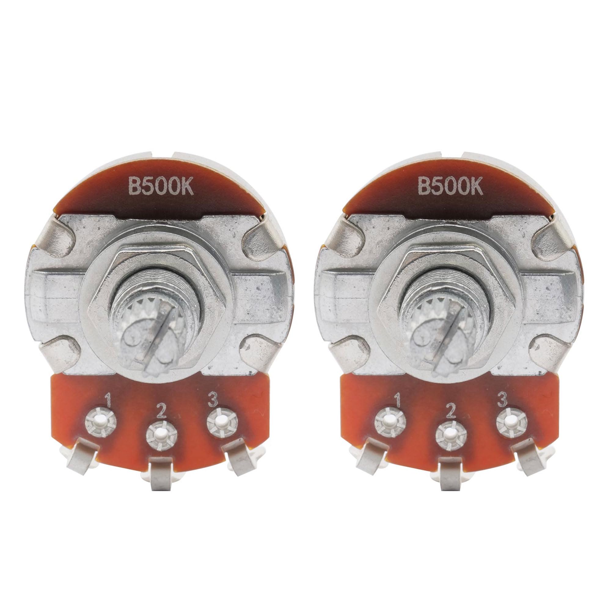 Musiclily Pro HD A500K+B500K Messing Metrisch Grob 18 Zähne Split Shaft Poti Audio Taper Potentiometer Für E-Gitarre Und Bass(2A2B Set Schaft und Gewinde aus Vollmessing, bessere Leitfähigkeit Grob 18-spline split Schaft Durchmesser: 6 mm, Metrisches M8-Gewinde, Gewindedurchmesser: 8 mm, Gewindelänge: 6,5 mm Full brass made shaft and thread, better conductivity. Linear taper, resistance: 500K, tolerance: 20%, usually used for humbuckers, remains more high-end frequencies, gives brighter tone than 250K Musiclily Metrische Potentiometer in voller Größe, 500 K, geteilt, gerändelt, lang, 18 mm Schaft, lineare Kegel-Gitarren-Potentiometer für Stratocaster und Telecaster, E-Gitarre, Bass-Teile (2 Stück Widerstandsverlauf: linear, Widerstand: 500K, Toleranz: 20%, normalerweise für Humbucker verwendet, bleibt mehr High-End-Frequenzen, gibt helleren Ton als 250K Wir bieten Ihnen eine Übersicht von aktuellen Deals und Rabatten für clevere Einkäufe.