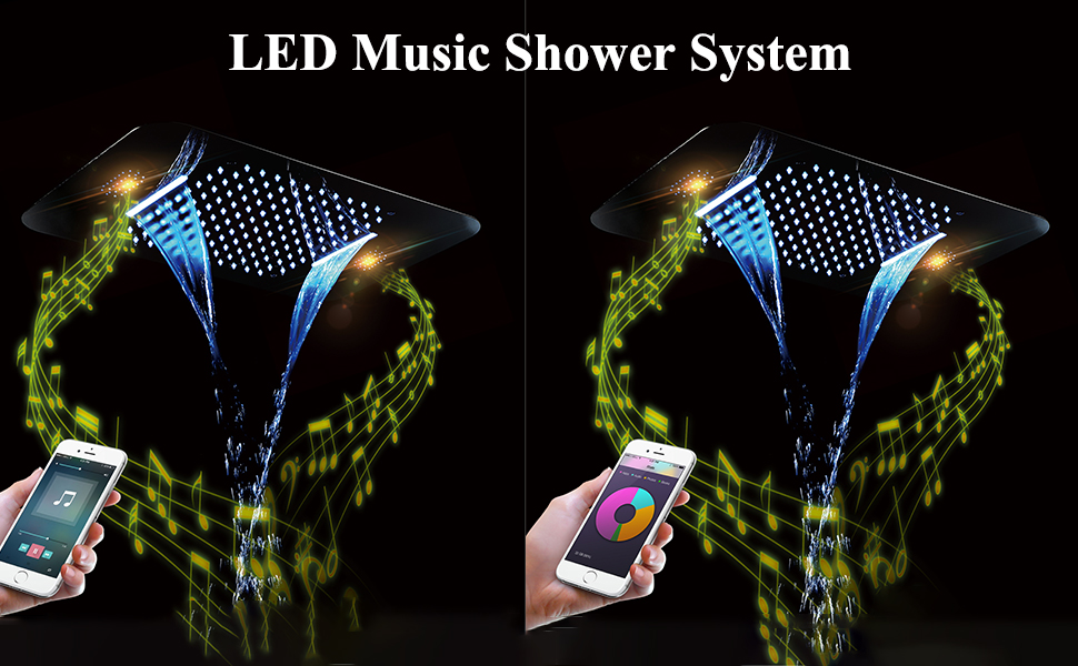 LNXGJJ Duschkopf Musik Brausekopf Dusche Chrom Regendusche 64 Farben LED Duschkopf Unterputz Brausekopf Edelstahl 900 * 300 Mm Sparduschkopf