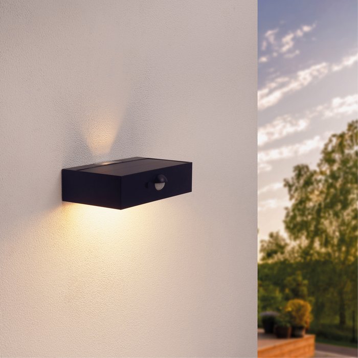 Näve Außen-Wandleuchte MRA, LED Fest Ntegrert, 2er Set Solar Schwarz Daemmerungssensor Bewegungssensor