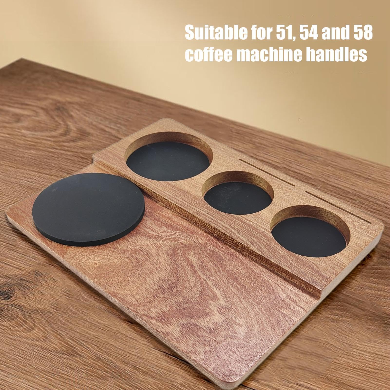 NEOUZA Espresso-Tampermatte Und Organizer-Station, Holzstopfständer Mit Siebträgerhalter, Espresso-Zubehör, Walnussholz Und 304 Edelstahl (51 Mm