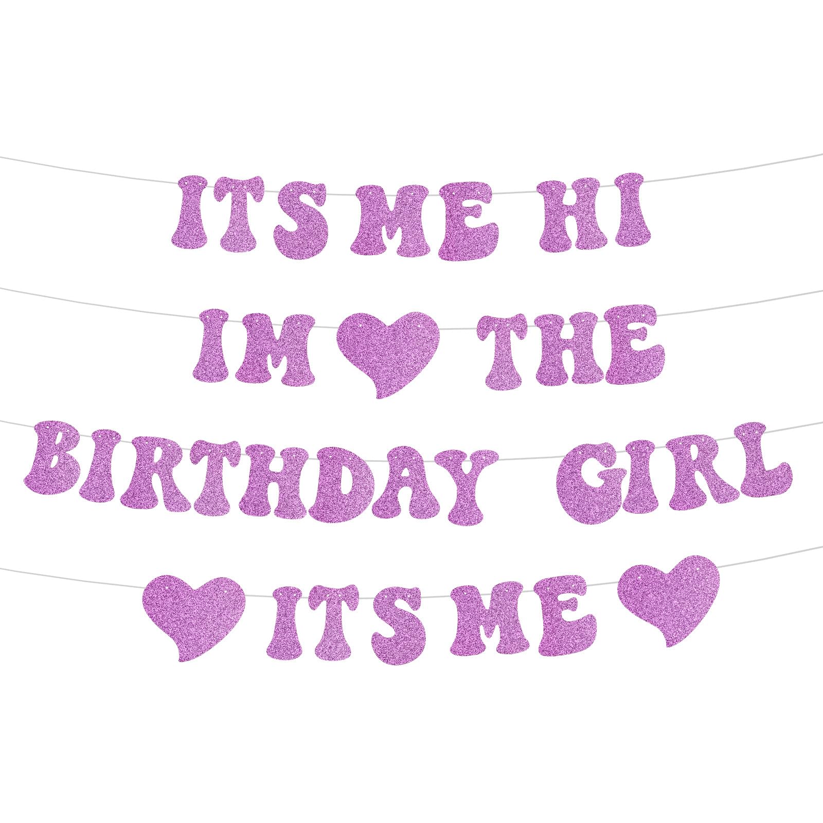 NO-DIY Banner Mit Aufschrift "It's Me Hi Im The Birthday Girl It's Me", Lila Und Blau, Glitzernd, Beliebte "Happy Birthday"-Dekorationen, Banner, Vorbespannte Girlande Für Mädchen-Fans