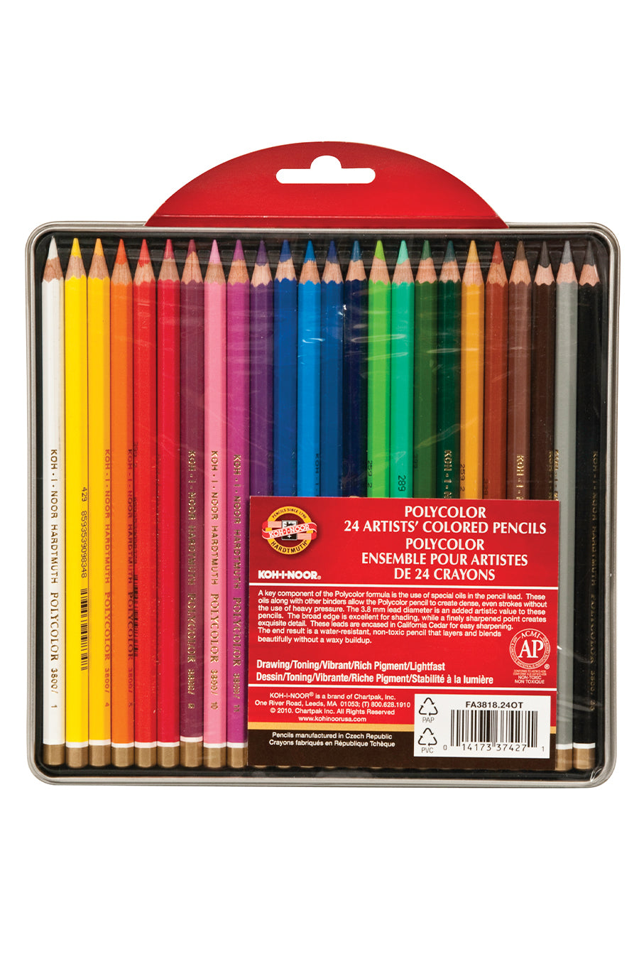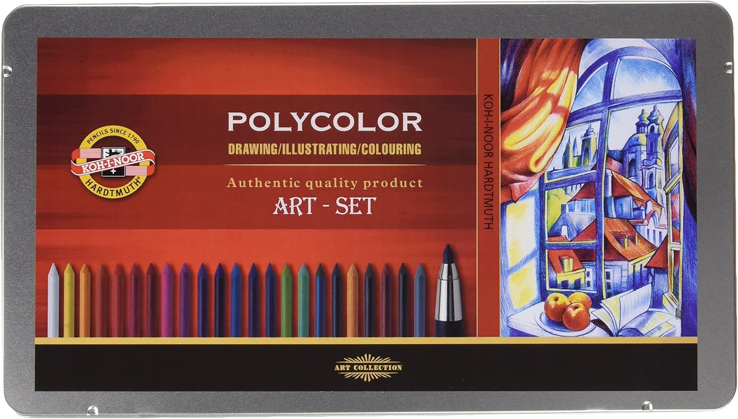 Koh-I-Noor POLYCOLOR, 24 Künstlerfarbstifte im Metalletui Polycolor 24er Landschaft Farbstifte Zeichenstifte für Künstler von KOH-I- NOOR in Metall-Geschenkbox - exclusiv farbig sortiert für Landschaftsmalerei KOH-I-NOOR Polycolor Künstler-Zeichenset mit Farbminen, Papier: 80g/qm , 124 Blatt , Klebebindung 6 Fallbleistifte In Metallbox KOH-I-NOOR Versatil 5217 Mit Farbminen 2 – FineArt Künstlerbedarf 6 Fallbleistifte mit Farbminen in der Stiftfarbe + Radiergummi Holzgefasster Farbminenstift (Mine 3,8mm) auf Ölbasis mit wischfestem, farbsatten Abstrich. Die Pigmente der Polycolorserie sind ausgezeichnet in ihrer Licht -Dauerhaftigkeit und Reinheit der Farben geeignet für 2mm KOH-I-NOOR Fallminen