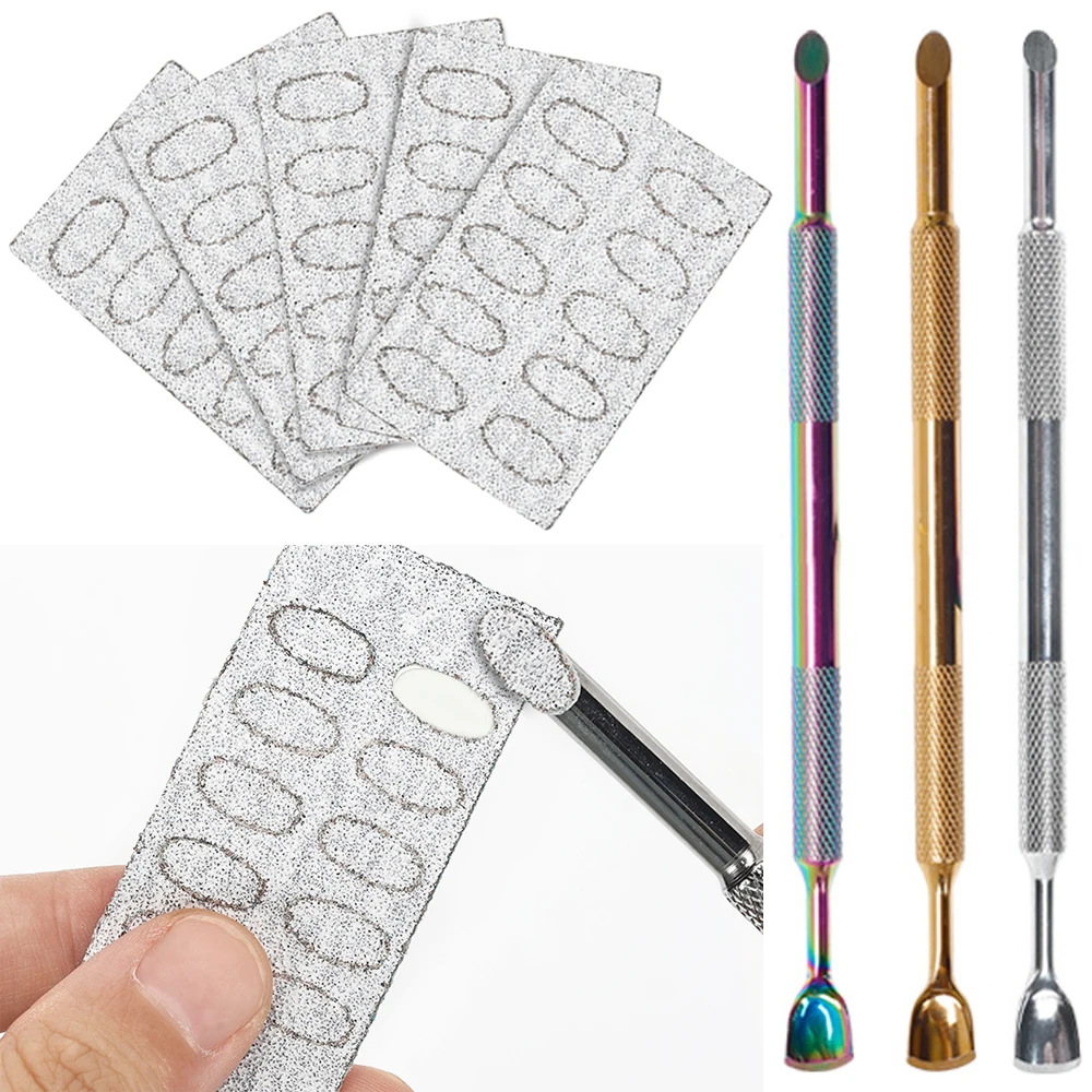 SGERUFZ 1pcs Doppelkopf Edelstahl Nagelhautschieber Mit 10pcs Schleifpapier, Profi Nagelhautschneider Werkzeug Für Maniküre Und Pediküre (Silber