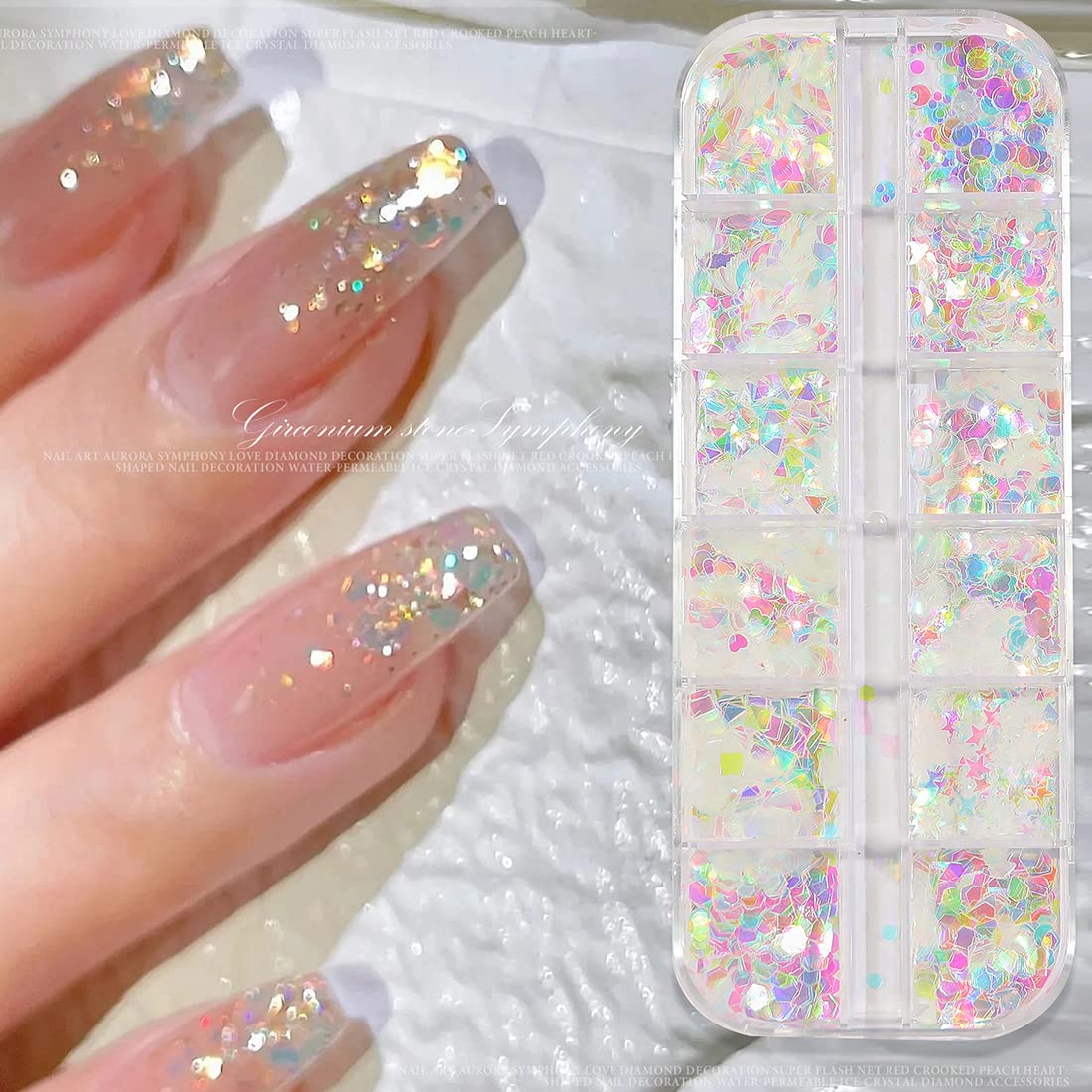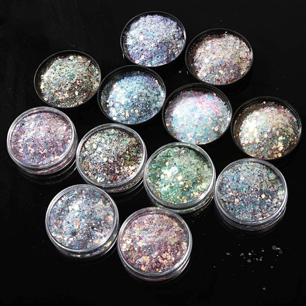 48 BOXEN NAGEL Glitzer, Holographische Nagelpuder, Nagel Funkeln Pailletten, 3D EUR 11,99 - DE