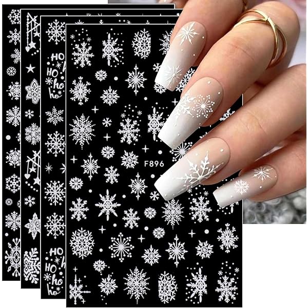 Jmeowio 3D Nagelsticker Weihnachten Nail Art Sticker Selbstklebend Nagelaufkleber Stereoskopisch Schneeflocken