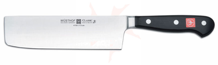 Der ergonomische Griff liegt gut in der Hand und unterstützt ermüdungsfreies, sicheres Schneiden Die Wüsthof Classic Messerserie überzeugt mit zeitlosem Design und zuverlässiger Leistung. Découvrez notre avis sur le couteau nakiri Wüsthof TR4193 Wüsthof Nakiri / Nakiri, 17 cm, Classic Ikon, Küchenmesser, Silber, Schwarz Neues Produkt Lieferzeit: 2-3 Wochen 174,71 € Gratisversand Zum Shop Fissler Schnellkochtopf Wüsthof Classic Nakiri 13 Cm Limited Edition, 4193-13 | Günstiger Shoppen Bei Nihon X30 Die ultrascharfe Klinge wird aus einem Stück Stahl geschmiedet. Ein gutes Küchenmesser mit rutschfesten Griffen aus Spezialkunststoff. Sie ist pflegeleicht und bietet für jeden Food-Fan das richtige Koch-Werkzeug – z., B. Ein Markenmesser eines echten Traditionsunternehmens: Made in Germany – geschmiedet in Solingen Ideal für die Vorbereitung von Gemüse: mit der sehr dünnen, extrem scharfen Klinge erzielen Sie beim Schneiden, Würfeln und Hacken sehr schnell ideale Schnittkanten – die filigrane Klinge darf nicht für grobe Aufgaben (Knochen hacken) verwendet werden This Nakiri is part of the Wüsthof Classic Asian Line and has a steeper grinding angle (11 degrees per side) to other knives in the series. With a selection of about 70 different blade shapes from 7 to 36 cm, the Wüsthof Classic is the widest range of knives available Wüsthof Classic Nakiri mit Kullen 17 cm, 1040132617: Klingenlänge: 16 cm, Gesamtlänge: 28,8 cm, Gewicht: 180 g