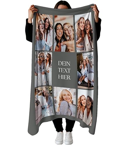 Fotodecke beleben Dein Raum-Ambiente! Einzigartige Geschenkidee für Ihren besten Freund, Mutter, Vater, Frau, Ehemann, Tochter, Sohn, Großmutter, Großvater, Verlobten, Schwester, Bruder, Tante, Freund, Freundin, Jungen, Mädchen, ihn, ihren, Vater, Mutter, Jungs, Mitarbeiter oder auch für Sie. Die persönliche Fleecedecke ist so weich und warm. Unvergessliche, atemberaubende Momente werden einmal nicht im klassischen Fotorahmen, sondern als traumhaft schöner Fotodecke präsentiert. UOOYAA Personalisierte Fotodecke Mit Eigenem Foto,Kuscheldecke Eine Kuscheldecke mit Namen oder Foto sorgt für besondere Gemütlichkeit. Ebenfalls eine wunderbare Geschenkidee ist die Fotodecke, mit der Sie Ihre Gefühle ausdrücken können. Die Grammatur unserer Fleecedecken liegt bei mindestens 353 gr/m2 und die Dicke is 3mm. Benötigt 5-7 Werktage zum Basteln. Die Decke kann mit Foto, Logo oder Namen bedruckt werden und ist aus super weichem Qualitätsfleece hergestellt. Die Foto Kuscheldecke ist vielseitig einsetzbar und überall ein absoluter Hingucker. Sie dekorieren gerne Ihre Wohnung? Die Fotodecke ist eine ganz besondere Überraschung für eine Wohnung. Lassen Sie sich von der hochwertigen Qualität des Drucks sowie des Materials in den Schlaf wiegen. (Die Anzahl der druckbaren Fotos variiert je nach Deckenstil) 2., Klicken Sie auf Jetzt anpassen => Wählen Sie Farbe 3., Fügen Sie Text hinzu 4., * Senden Sie Ihre Fotos an us (Bild (er) in hoher Auflösung erforderlich) *. Mit dieser Kuscheldecke aus Fleece sind deine Liebsten immer in deiner Nähe. Genieße ab jetzt jeden Tag den Blick auf Deine Liebsten und freu Dich umso mehr auf den gemütlichen Tagesausklang auf dem Bett or Couch Decke Mit Foto VEELU Fotodecke Mit Eigenem Foto Name Super Weich - Decke Selbst Gestalten Bedrucken Lassen Kuscheldecke Personalisierte Geschenk Für Freunde Familie Geburtstag Weihnachten 140 X 203cm Weihnachtsgeschenk Oma Du kannst Deine Fotodecke gestalten sowie anschließend im Haus dekorativ präsentieren. Auf dem Sofa, Bett, oder als dekoratives Lifestyle-Produkt. Fantastisches Geschenk für den Vatertag, Geburtstag, Muttertag, Weihnachtsgeschenk, Hochzeit und jede Gelegenheit, oder einfach ohne besonderen Grund, um Ihrem geliebten Menschen etwas Liebe zu zeigen!