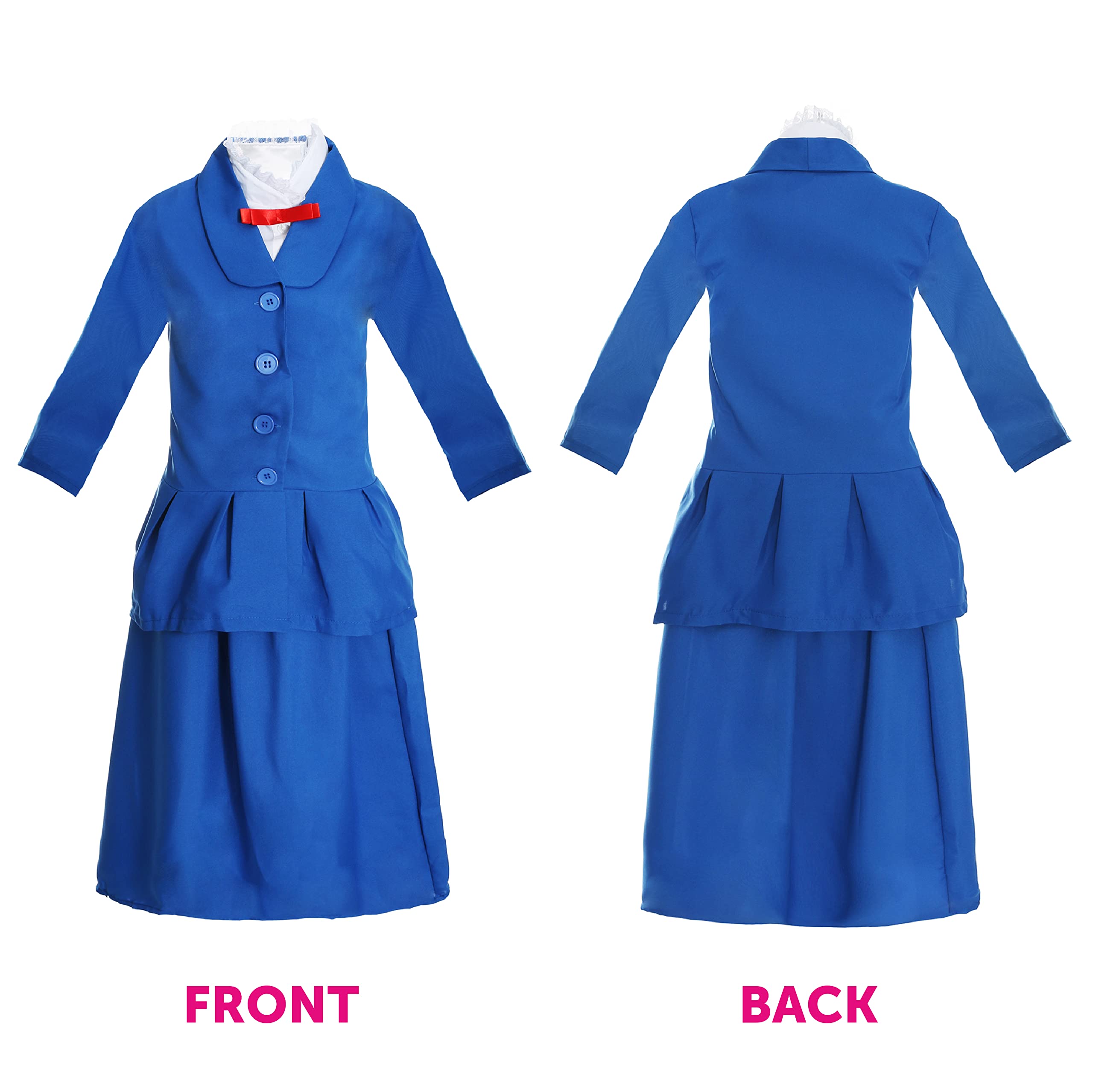 Englische Nanny-Mädchenkostüm Faschingskostüm Blau-grau