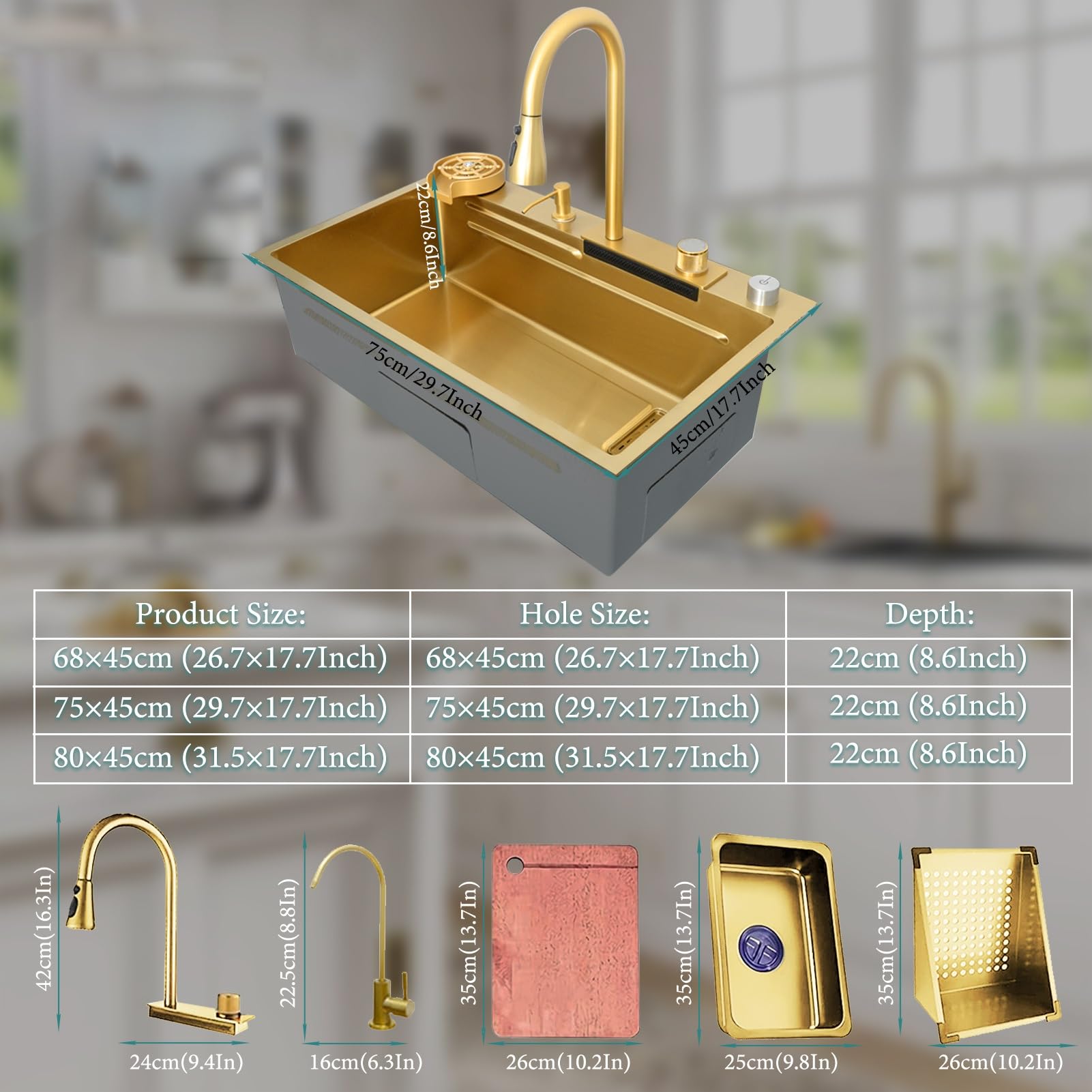 Gold Nano Küchen-Wasserfall-Spülenset Mit Multifunktionalem