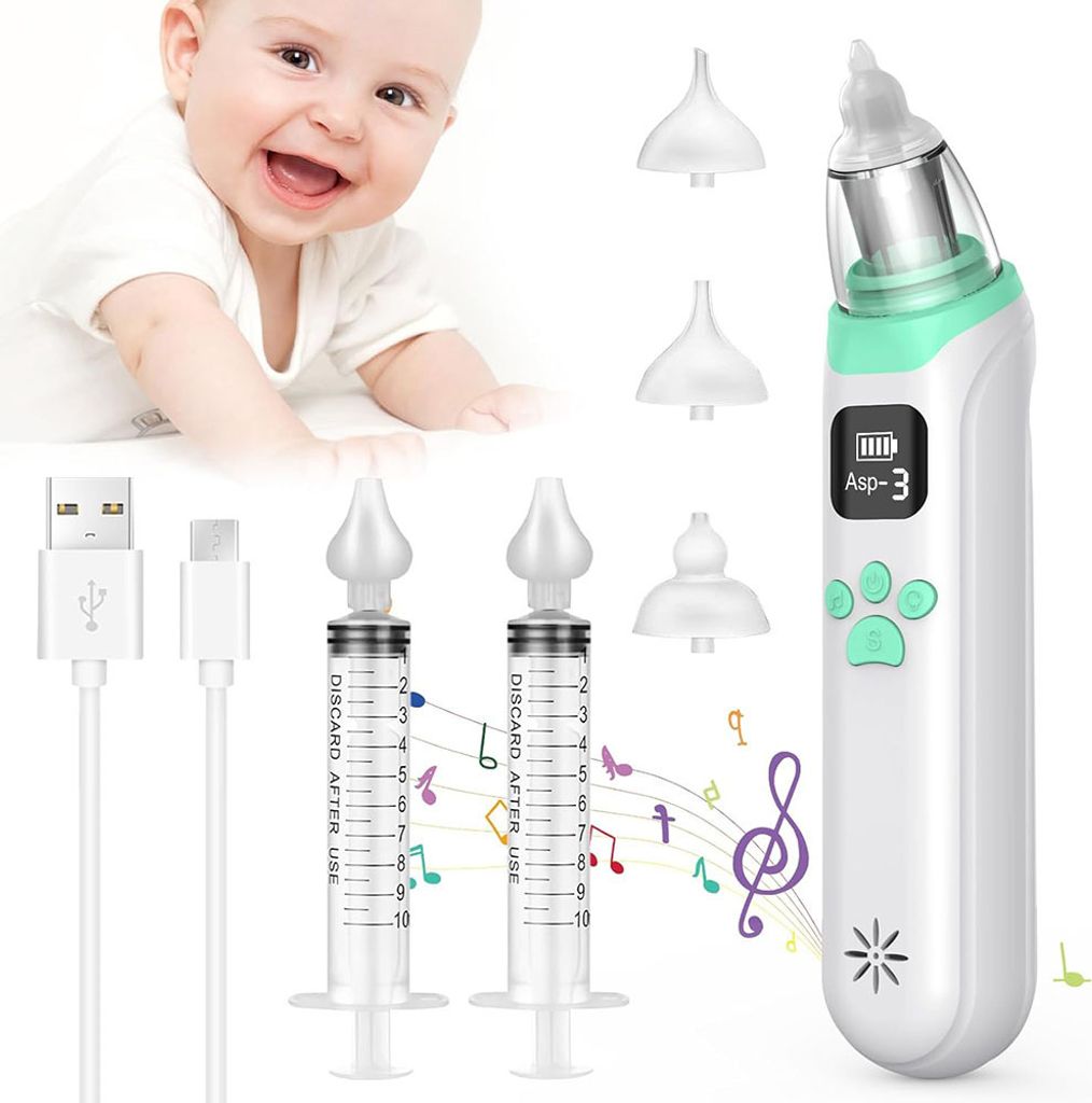 Daher müssen Sie nur das Zubehör abnehmen und direkt unter dem Wasserhahn abspülen oder nach jedem Gebrauch des elektrischen Baby-Nasensaugers in heißem Wasser waschen. Der elektrische Baby-Nasensauger DynaBliss entspricht medizinisch geprüften Sicherheits-Saugstandards, um Schäden an der empfindlichen Nasenschleimhaut, am Mundkontakt und Kreuzinfektionen des Babys zu vermeiden. Wenn Sie den Nasensauger Ihres Babys sauber halten, müssen Sie sich weniger Sorgen machen und haben mehr wertvolle Zeit, um sich um Ihr Baby zu kümmern Mit einer Akkukapazität von 2600 mAh reicht eine einzige Ladung für eine lange Zeit, und mit unserem anpassungsfähigen Ladekopf können Sie ihn überallhin mitnehmen. Baby Nasal Aspirator | Electric Nasal Aspirator Baby Vacuum Cleaner Rechargeable with 3 Suction Levels Music Nasal Aspirator Es ist ein unbenutzt. Leiser Betrieb: Dieser DynaBliss-Nasensauger für Babys ist mit einem hochwertigen Motor ausgestattet um Geräuscharmut zu gewährleisten; ein warmes LED-Licht sorgen dafür, dass Ihr Baby in einer ruhigen Umgebung ein sauberes Nasenerlebnis genießen kann. Kräftige, aber sanfte Erleichterung für die verstopfte Nase Ihres Babys: Mit 9 einstellbaren Saugstufen (bis zu 70 kPa) ist dieser Nasensauger für Babys eine wirksame Lösung selbst für hartnäckige verstopfte Nasen, aber dennoch sanft zur empfindlichen Nase Einfache Reinigung: Hygiene ist einfach und stressfrei. Die angebrachte Pinzette erleichtert den VorgangVersand ist möglich und muss vom Käufer mit übernommen werden (Warensendung, Päckchen oder Paket). Desinfizieren Sie die Saugdüse und den transparenten Auffangbehälter nach dem Gebrauch, um Kreuzinfektionen zu vermeiden., 3., wenn das Fassungsvermögen des Auffangbechers die Hälfte des Becherkörpers erreicht, muss er rechtzeitig gereinigt werden, bevor er weiter verwendet wird, um zu vermeiden, dass nasaler Schmutz auf den Motor gesaugt wird und das Produkt beschädigt wird ., 4., Wenn das Kind hartnäckige Popel hat, verwenden Sie eine Kochsalzlösung, um sie aufzuweichen, bevor Sie den Nasensauger verwenden., Gebrauchsanweisung 1., Weichen Sie hartnäckigen Schleim mit normaler Kochsalzlösung auf., 2., Stellen Sie sicher, dass der Mund des Babys geöffnet ist, um die Luftzirkulation in der Nasenhöhle zu gewährleisten., 3., Setzen Sie die Spitze vorsichtig in die Nase ein., 4., Bedienen Sie den Saugmechanismus vorsichtig und effektiv., 5., Nehmen Sie nach jedem Gebrauch die wiederverwendbaren Komponenten ab und reinigen Sie sie. Sie können ganz einfach die richtige Spitze für das Alter und die Nasengröße Ihres Kindes auswählen und so sicherstellen, dass der Popelsauger immer effektiv und bequem funktioniert. Dieser Baby-Nasensauger ist so konzipiert, dass er sanft und beruhigend ist und Komfort bei verstopfter Nase bietet Produktbeschreibungen Produktbeschreibung Packungsinhalt: 3 austauschbare Düsen, 1 Hauptkörper, 1 Clip, 1 Auffangschale, 1 magnetisches Ladekabel, 1 Benutzerhandbuch (englische Sprache nicht garantiert)., Hinweis: 1., vor Gebrauch die Hände waschen 2., das gesamte Produkt nicht in Flüssigkeiten, wie z., B., Wasser, eintauchen. Grownsy er Nasensauger – Die 15 Besten Produkte Im Vergleich Nasensauger Elektrisch Unser wiederaufladbarer Nasensauger ist mit einer einstellbaren 9-stufigen Saugleistung ausgestattet, die problemlos Nasenschleim absaugen kann, ohne die Nasenhöhle zu berühren, und die empfindliche Nasenschleimhaut Ihres Babys schützt Alle wichtigen Teile - die Saugspitze, die Kammerteile und sogar das Kabel - können zur gründlichen Reinigung leicht abgenommen werden, ohne dass versteckter Schmutz zurückbleibt. Er ist BPA-frei und wird die empfindliche Nase Ihres Babys niemals schädlichen Chemikalien aussetzen. Dies ist der am besten akzeptierte Nasensauger für Ihr Baby. Das Baby wird von einer sichereren, effektiveren und fortschrittlicheren Methode profitiert, damit es entspannter und freier atmen kann. Kräftige, aber sanfte Erleichterung für die verstopfte Nase Ihres Babys: Mit 9 einstellbaren Saugstufen (bis zu 70 kPa) ist dieser Nasensauger für Babys eine wirksame Lösung selbst für hartnäckige verstopfte Nasen, aber dennoch sanft zur empfindlichen Nase. Infos laut Hersteller:Effektive und starke Absaugung: Das Design des DynaBliss-Nasensaugers ist anderen Pumpen überlegen.