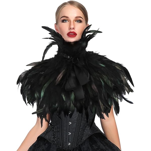 Ulikey Federkragen Schwarz Damen, Schwarzer Natürlicher Feder Cape, Halloween Kostüm Damen Mit