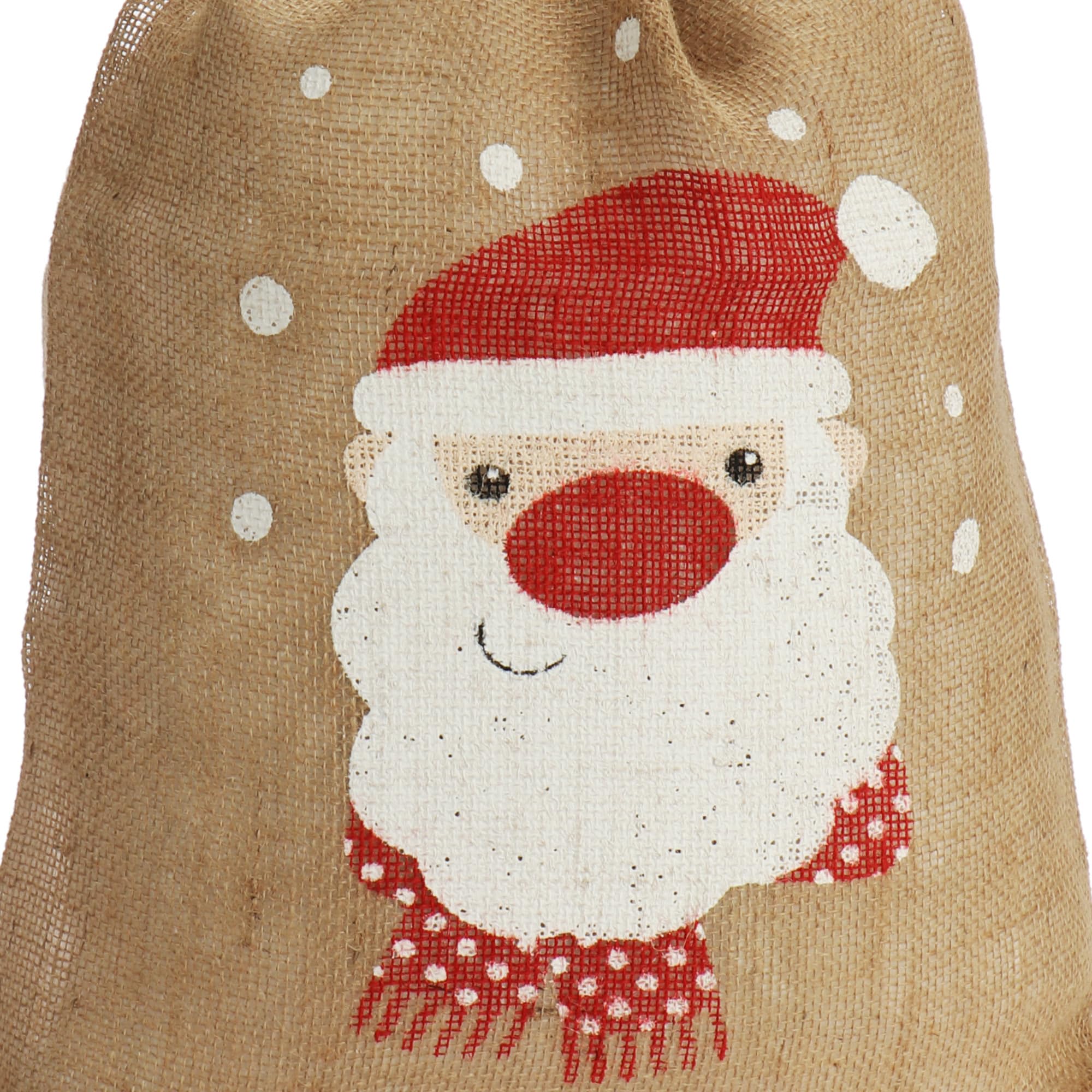 1 Naturfarbener Jutebeutel, Jutesäcke Mit Farbigem Weihnachtsmann