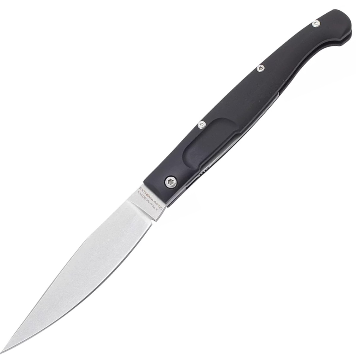 Als Verbesserung der Tradition wurde eine Liner Lock Klingenarretierung hinzugefügt., Details: Komplett zerlegbar., Liner-Lock Klingenarretierung., Stone Washed Finish., Klingenlänge: 100 mm., Klingenstärke: 3 mm., Gesamtlänge: 220 mm., Gewicht: ca., 65 g. Das jahrhundertealte sardische Resolza ist eines der bekanntesten traditionellen Messer in Italien - bis heute ist es der ständige Begleiter für die Landwirte und Hirten in ihrer alltäglichen Arbeit. „Resolza“ ist ein alter Name, der an das italienische Wort für Rasiermesser erinnert. Der Griff wurde neu gestaltet, während die Klinge sich an die traditionelle Form hält. Extrema Ratio Messer Extrema Ratio Resolza Stonewashed Navaja | Compras Con Ventajas En Extrema Ratio Requiem Das Resolza Taschenmesser hat die ursprünglichen Maße und Proportionen mit einer 10 cm langen Klinge und wird mit den üblichen Extrema Ratio High-End Materialien und Technologien produziert. Extrema Ratio N.K.1 Stone Washed