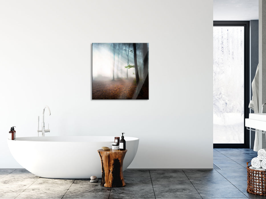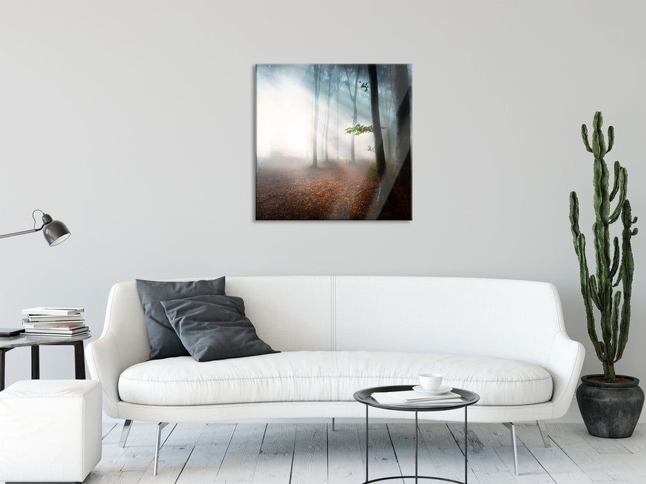 Pixxprint Düsterer Wald Im Nebel Als Leinwandbild/Grösse: 100x70 Cm