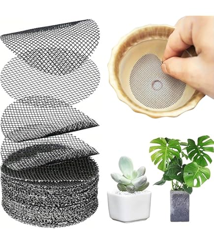 100 Stu00fcck Blumentopf Loch Netz Pads Rund Und Quadratisch, Bonsai Topf Boden, Gitter Matte Zur Verhinderung Von Bodenverlust, Atmungsaktive Dichtung, 3 Modelle (50 4,5 Cm, 30 2,16/5, 20 2,9/7,5 Cm