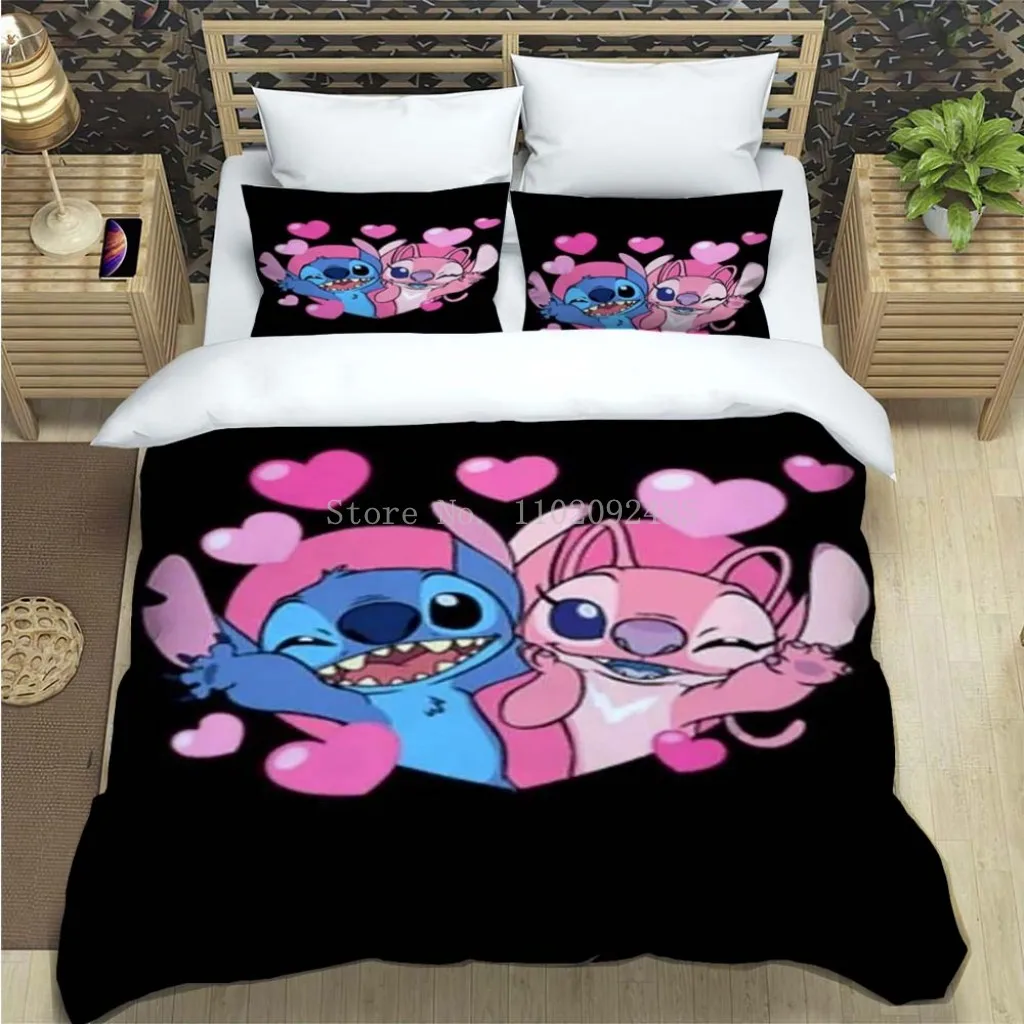 Neue Lilo & Stich Engel Blau Rot Bettcke Bettcke Bett Bezug Set Bettwäsche Set Kissen Bezug Schlafzimmer Nach Hause Jungen Mädchen Freund Geschenk