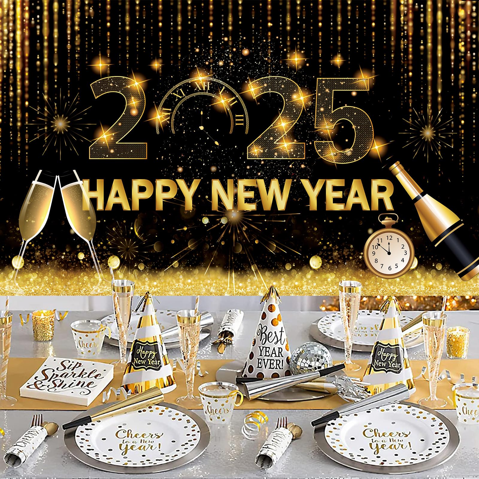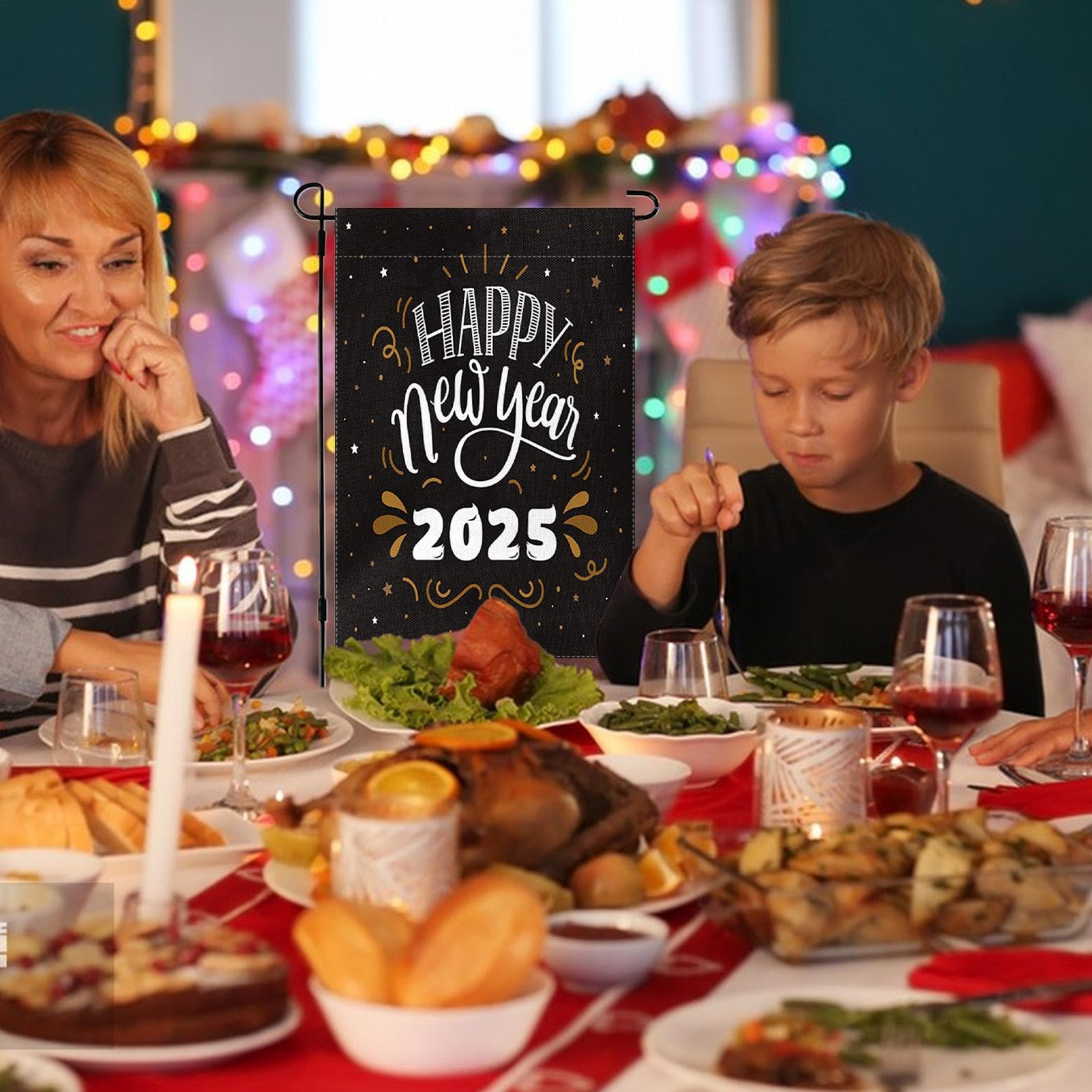 Happy New Year Outdoor-Flagge, Doppelseitige Neujahrsflagge 2025