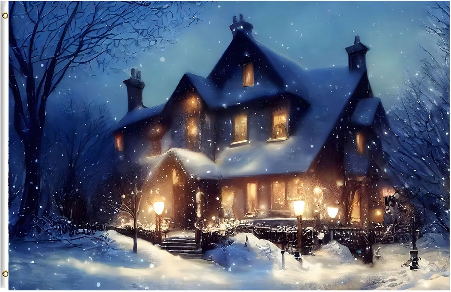 Pickako Weihnachtsbaum Winter Happy New Year Schneehausflagge 71,1 X