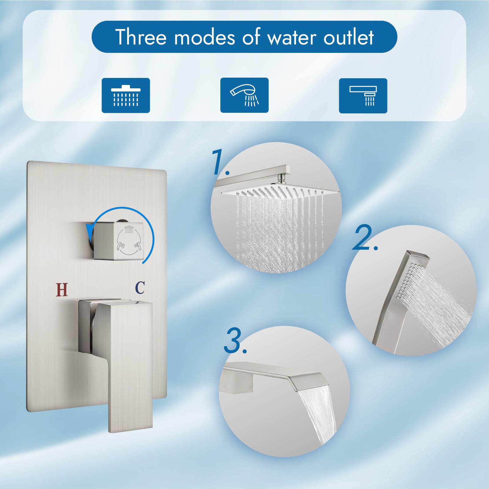 Cinwiny Wandmontiertes Duschset Für Den Außenbereich, Gebürstetes Nickel, 15.2 Cm, Quadratisch, Regenduschkopf Mit Handbrause, Außen, Dual-Funktions-Duschset