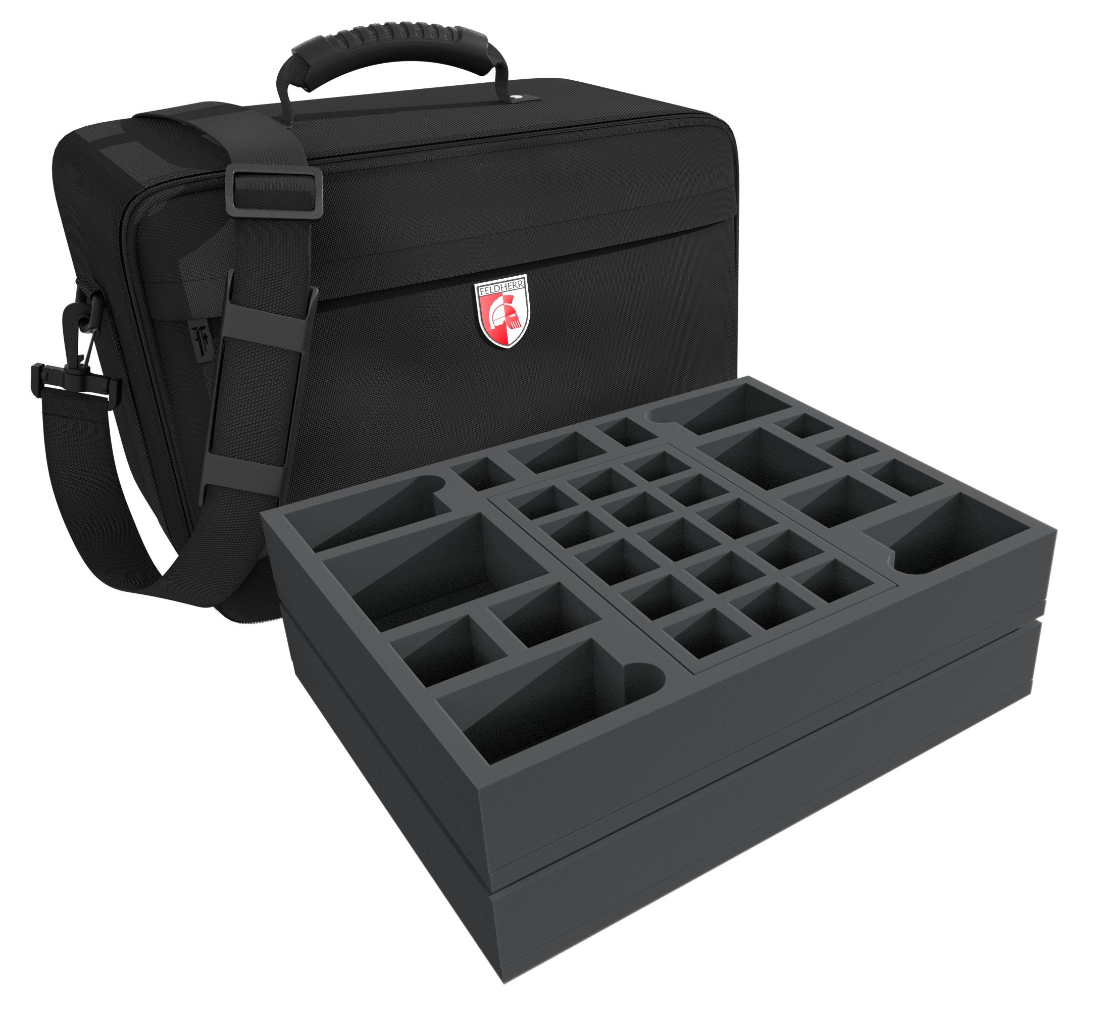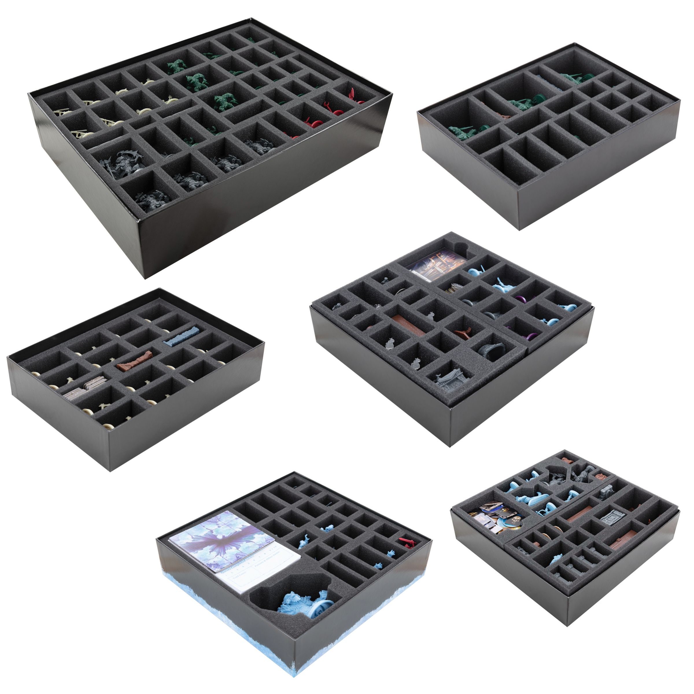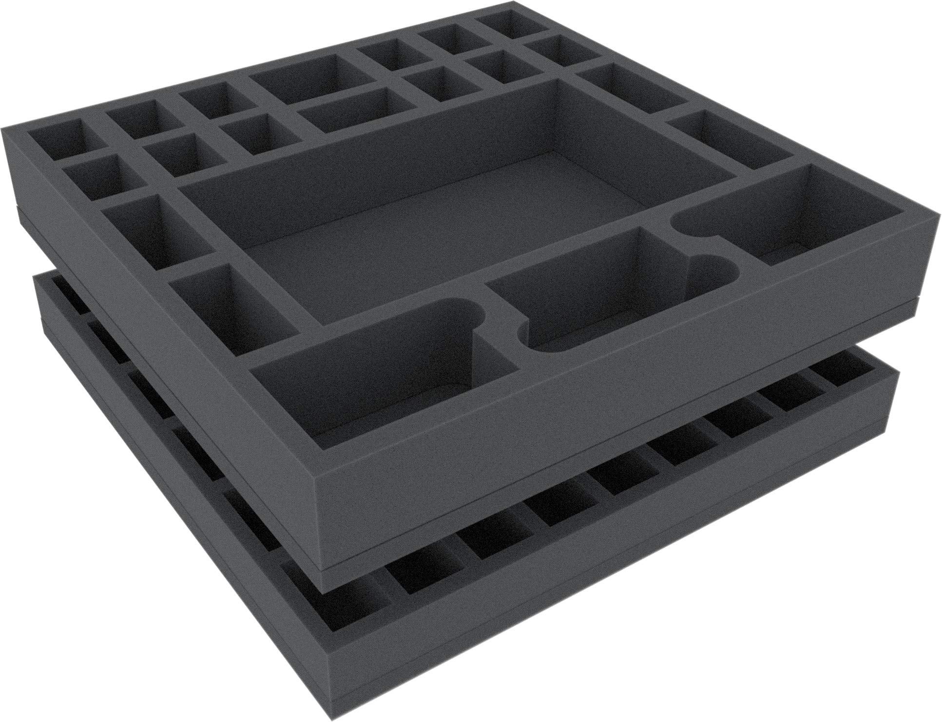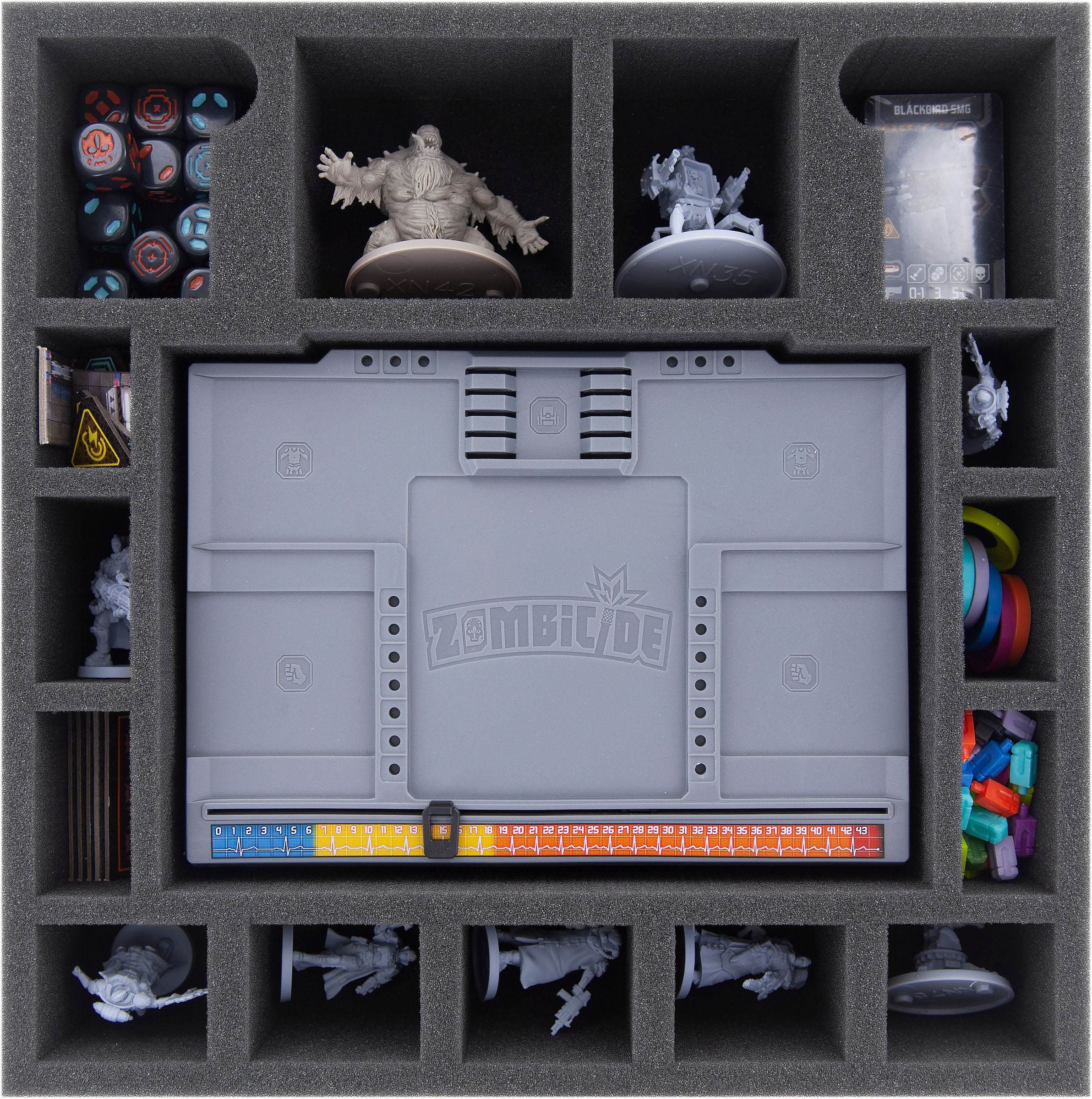 Perfekt passende Einlage für die original Zombicide Wulfsburg Brettspielbox. Die 29 unterschiedlich großen Fächer sind speziell für die Figuren und das Spielmaterial gefertigt. Schaumstoff-Set für Zombicide: 2. Edition - Rio Z... 1 großes Fach für die Dashboards, dieses lässt sich mit dem mitgelieferten Einsatz in 15 kleine Fächer z., B. Karten passen in Kartenschutzhüllen in die Fächer Inklusive extra Schaumstoffeinsatz für 15 extra Fächer Abmessung: 295 mm x 295 mm x 55 mm hoch (inklusive Boden); Nutzhöhe innen: 45 mm, Made in Germany, hochwertiger, feinporiger Schaumstoff Schaumstoff-Set Für Zombicide: Night Of The Living Dead - Brettspielbox Perfekt passende Einlage für die original Zombicide Wulfsburg Brettspielbox. Die 29 unterschiedlich großen Fächer sind speziell für die Figuren und das Spielmaterial gefertigt Perfekt passende Einlage für die original Zombicide Wulfsburg Brettspielbox. 25 Fächer Helden und Zombie-Wölfe für Walker unterteilen Das Set passt in die originale Brettspielbox für die Erweiterung und beinhaltet: 1 Schaumstoffeinlage für alle Miniaturen und das gesamte Zubehör, 1 Schaumstoffdeckel chlorfrei und säurefrei, Warnhinweise No Produktbeschreibungen Perfekt passende Einlage für die original Brettspielbox. Die 29 unterschiedlich großen Fächer sind speziell für die Figuren und das Spielmaterial gefertigt. Gratis dazu gibt es einen Schaumstoffeinsatz, durch den das große Fach für die Dashboards in 15 kleinere Fächer unterteilt werden kann. In die Schaumstoffmatte passen 21 Zombie-Wölfe, ein Wolfbomination, vier Helden, vier Dashboards, Karten in Hüllen und Marker. Säure- und chlorfrei! Feldherr Schaumstoff-Set kompatibel mit Zombicide: Friends and Foes - Brettspielbox