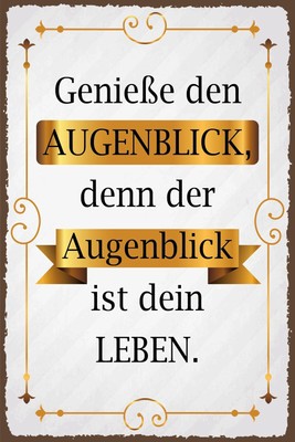 Geneße Den Augenblck Denn Der Augenblck st Den Leben Schilder - Willkommen im Klapp-Lädchen Blechschild 30 x 20 cm - hochgeprägt und matt lackiert - UV beständig - 4 Randlöcher zur einfachen Montagen Genieße den Augenblick, denn der Augenblick ist dein Leben.: Notizbuch mit Weisheit, Zeilen und Seitenzahlen. Für Notizen, Skizzen, Zeichnungen, als Kalender, Tagebuch oder Geschenk : Notebook Geschenkidee, Notizbuch Weisheit Lustig 🏡 【DEKORATIVES WOHN-ACCESSOIRE】 Unsere dekorativen Blechschilder eignen sich, um Ihre Türen / Haustüren oder Wände in Ihrem Zuhause zu verschönern - Um Ihren Arbeitskollegen auf der Arbeit, im Betrieb oder im Büro ein Lächeln ins Gesicht zu zaubern. Info zu diesem Artikel Dekoratives Schild aus Stahlblech in den Maßen 20x30cm. Hergestellt in Deutschland. Nützlich, unterhaltsam, Retro oder nostalgisch Hochwertig lackiert und bedruckt. Gewölbte Ausführung mit abgerundeten Ecken und gefalzten Kanten Als Deko / Dekoration für die Theke, Kneipe, Bar, Cafe, Hotel, Club, Küche, Partykeller, Werkstatt, Hauseingang, Irish Pub, Wohnzimmer, Keller, Garten Tor, Hobbyraum, Gartenhäuschen, Garage, Bad, WC, Klo, Toilette, Gäste-WC, Wohn & Schlafräume… 🎁 【HAMMER GESCHENKIDEE für jeden Anlass】 Weihnachten, Geburtstag, Vatertag, Namenstag, Muttertag, Feiertag, als besondere Überraschung oder Mitbringsel, als Einladung für eine Party oder Feier, Geschenk Mädelsabend, Junggesellenabschied (JGA), als Hochzeitsgeschenk, für Sammler, zum Einzug/Einweihung ins neue Zuhause, für die Wohnung, Mitbringsel - Souvenir für Grill Feier, zum Wichteln, als Abschiedsgeschenk, als Dankeschön oder einfach um sich selbst eine kleine Freude zu machen.:)
