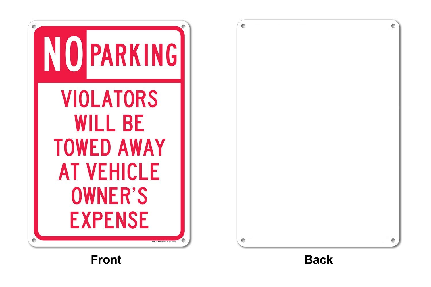 No Parking Sign, Violators Will Be Towed Away At Vehicle Owners Expense Sign 14 X 10 Inches Reflective Aluminum Easy To