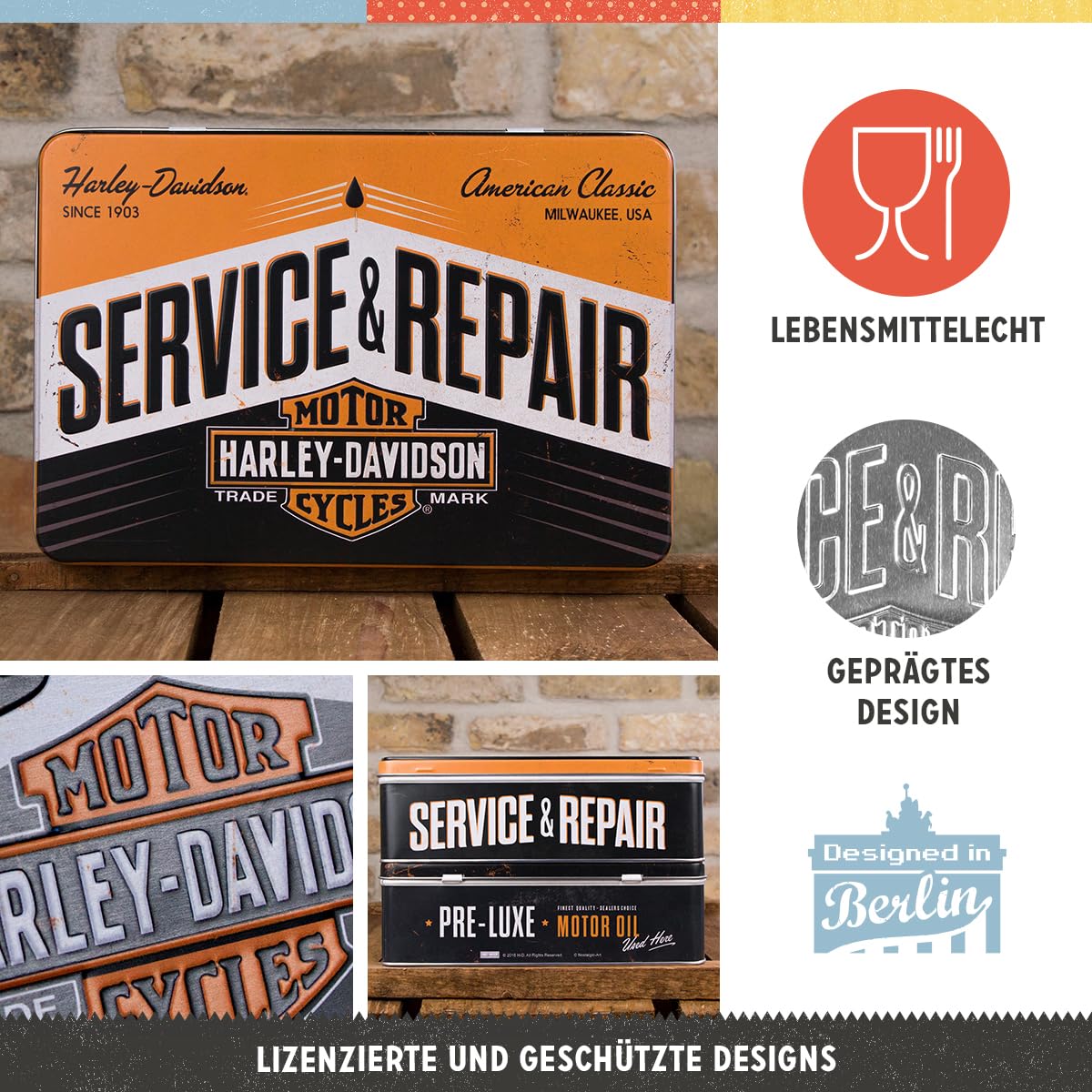 Sind die Dosen stapelbar, um Platz zu sparen? Ja, wenn die Dosen dasselbe Format haben, kannst du sie bedenkenlos übereinander stapeln, um Platz in deinem Vorratsschrank zu sparen. OFFIZIELLER LIZENZPARTNER: lizenziertes Originalprodukt, Designed in Berlin Schau einfach in unseren Amazon-Brandstore. 1 1A Qualität 2 Ansprechende Deko 3 Brillanter Druck 4 3D Motivprägung WE LOVE RETRO: Vorratsdose im nostalgischen Design mit Mattlack-Finish und rundum geprägtem Motiv Lässt sich der Deckel sicher verschließen? Der Deckel lässt sich fest verschließen – ideal für den täglichen Gebrauch und zur Aufbewahrung. Nostalgic Art Dosen online bestellen − Jetzt: ab 9,99 Nostalgic Art Retro Vorratsdose L, 3 L, Harley-Davidson - Genuine Oil Geschenk Idee Fuer Biker Original Lizenzprodukt Olp Grosse Kaffee Dose Aus Blech Werkstat Braun 58d7d6f8 B495 57fc Af3f F1a0f4e4005c Nostalgic-Art - Vorratsdose L - Kellogg's - Kellogg's Corn Flakes Ret Handelt es sich bei den Artikeln um offizielle Lizenz-Artikel? Ja! Gibt es das Motiv in weiteren Formaten? Ja, wir haben eine große Auswahl verschiedener Motive und Formate. Nostalgic-Art - Vorratsdose L - Dishwasher Tabs, 12,95 So bleibt alles frisch und geschützt. 14x10x20cm von Nostalgic-Art: Harley-Davidson "Flathead" Vorratsdose L ca.14x10x20cm von