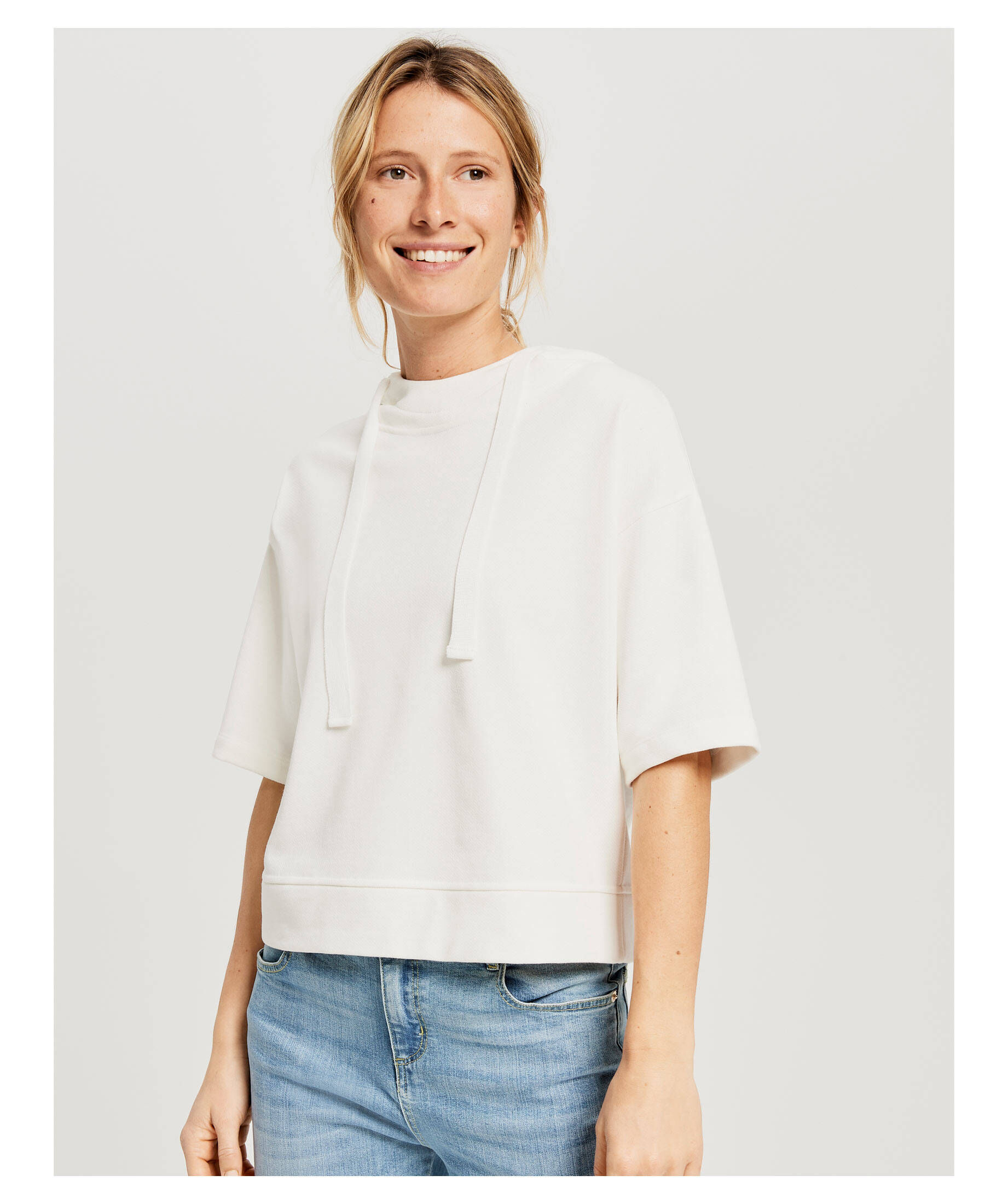 Ob Kapuzenhoodies, Pullover mit Logo-Print oder Modelle in XXL - Wir haben sie alle | OPUS Sweatshirt für Damen als Must-Have - Sweat, Baby, Sweat Unsere Produkte vereinen Casual Chic mit femininem Stil und sind somit modern und zeitlos zugleich. Passform | Das OPUS Damen Sweatshirt bietet eine lockere Passform. Ideal für Frauen, die Wert auf stilvolle und bequeme Kleidung legen. Das Sweatshirt legt den Fokus auf die markanten, überschnittenen Kurzärmel und bringt durch die strukturierte Oberfläche eine schöne Spannung in die Looks. Der Fit (Kurzarm und Rundhalsausschnitt) sorgt für einen vielseitig kombinierbaren Look. Das OPUS Sweatshirt eignet sich ideal für eine Vielzahl an Kombinationsmöglichkeiten. Sweatshirt Gewise grün online bestellen | OPUS Online Shop Opus Sweatshirt Damen OPUS Damen Sweatshirt | Kuscheliger Sweater GOKLONA Regular Aus Opus Pullover Sweatmode für Damen | OPUS Material | Das Sweatshirt GOSANN wurde aus hochwertigem Material (Baumwolle) hergestellt.