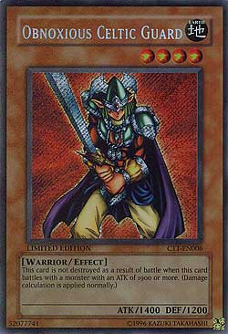 Yugioh Obnoxious Celtic Guard CT1-EN006 Secret Rare Englisch Kaufen Eine einzelne Karte aus dem Set Speed Duel: Battle City Finals Entdecke Obnoxious Celtic Guard (SBC2-ENA09) - Common - 1st Edition in großer Auswahl Vergleichen Angebote und Preise Online kaufen bei Kostenlose Lieferung für viele Artikel Ausgebildeter Keltischer Wächter / Obnoxious Celtic Guard Erweiterung: Collector's Tins 2004Seltenheit: Secret RareSprache: Englisch