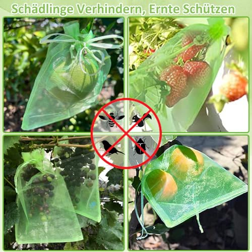 【Atmungsaktiv und Transparent】Das durchsichtige Netz lässt Sonnenlicht und Luft durch, sorgt dafür, dass sich keine Feuchtigkeit ansammelt und Früchte gesund wachsen; leicht und weich, ohne Gewicht und Beschädigung winziger Äste zu verursachen 50 Stück Grüne Netz-Obstschutzbeutel, 20.32x30.48 cm - Strapazierfähiges PE-Netz mit Doppelzugverschluss für Trauben, & Gemüse - Schädlingsbarriere & Gartepflege 【Langlebig und wiederverwendbar】Hergestellt aus hochwertigem Polyester-Organza, robustes Nylonmaterial macht Obstschutzbeutel waschbar und wiederverwendbar; bietet lang anhaltenden Schutz Saison für Saison Netze Für Beerensträucher Obstschutzbeutel, 100 Stück Obstschutzbeutel (20,3 X 30,5 Cm), Grüner Apfel Säcke 【Breite Anwendung】Perfekt zum Schutz von Obst und Gemüse wie Erdbeere, Äpfel, Tomaten, Mangos; Sorgt für Ihre Ernte weg von Schädlingen und Umweltschäden für Innen- und Außengarten 50 Stück Traubenschutzbeutel, Obst Schutzbeutel 30 X 20 cm, Trauben Schutzbeutel mit Kordelzug, Grüne Netzbeutel, Wiederverwendbar, Schützen Früchte vor Wespen, Fruchtfliegen, Vögeln, Anderen Insekten Der Stoff ist fein gewebt, sodass die Früchte vor Wespen, Vögel und der Kirschessigfliege geschützt sind. 100 Obstschutzbeutel können Ihre Trauben, Granatäpfel und andere Früchte gut abdecken und sie vor fliegenden Insekten, Würmern, Vögeln und Tieren schützen Der Beutel ist mehrfach verwendbar.