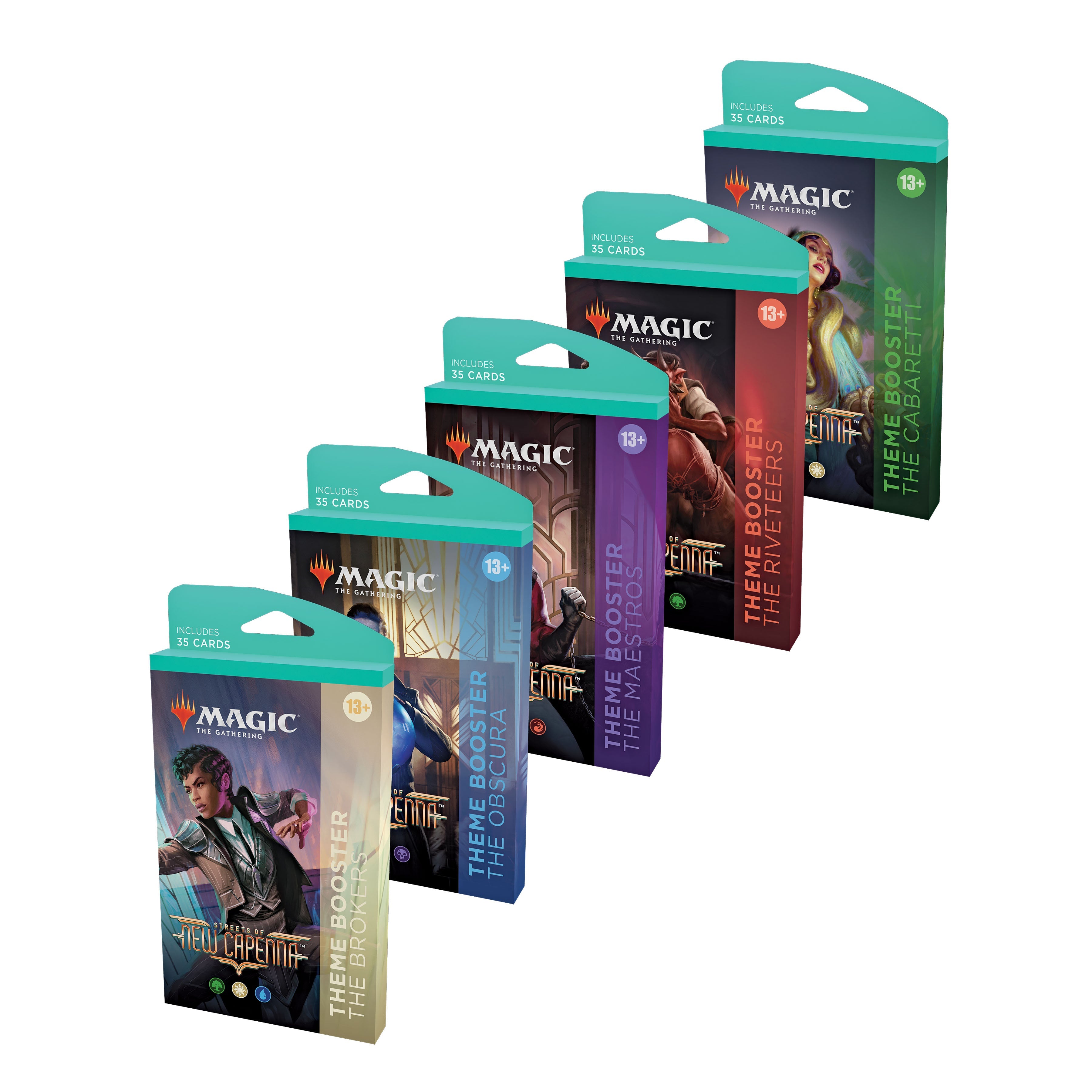 Enthält 35 Karten aus einem bestimmten Thema innerhalb des Capenna-Sets, wodurch es einfacher ist, mit dem Stil zu spielen, der zu Ihnen passt. Streets Of New Capenna Pre Release Theme Booster Streets Of New Capenna: Maestros - Magic: The Gathering | Bazaar Of Magic Wizards Kartenspiel Auf den Straßen von New Capenna treffen Sie jede der fünf rücksichtslosen Familien, die wühlen, um die Stadt zu kontrollieren: die Obscura, die Maestros, die Riveteers, die Cabaretti und die Brokers. Vue d'ensemble des produits de l'extension Les rues de la Nouvelle-Capenna Spieler werden sich mit einer dieser fünf Fraktionen ausrichten und um den Sieg ihrer gewählten Familie kämpfen. Jede der fünf Familien, die um Stärke und Gewinne in New Capenna winnen, nimmt mehr als nur ein oder zwei Farben an. This set contains the five different theme boosters from Streets of New Capenna: Obscura, Maestros, Riveteers, Cabaretti and Brokers. Each theme booster contains 35 Magic: the Gathering cards, one of which is rare and several uncommons and commons Dieses Angebot gilt für einen Booster von jedem Thema: blau, lila, rot, weiß, grün. Theme Booster Streets of New Capenna: Cabaretti from Magic: the Gathering.