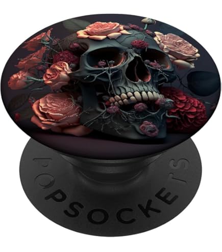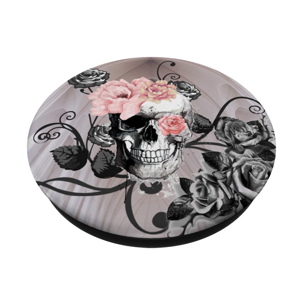 PopSockets Skull And Roses Day Of The Dead Gothic PopSockets PopGrip: Extendable Base And Grip For Mobile Phones/Tablets With Interchangeable Top