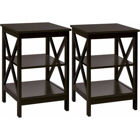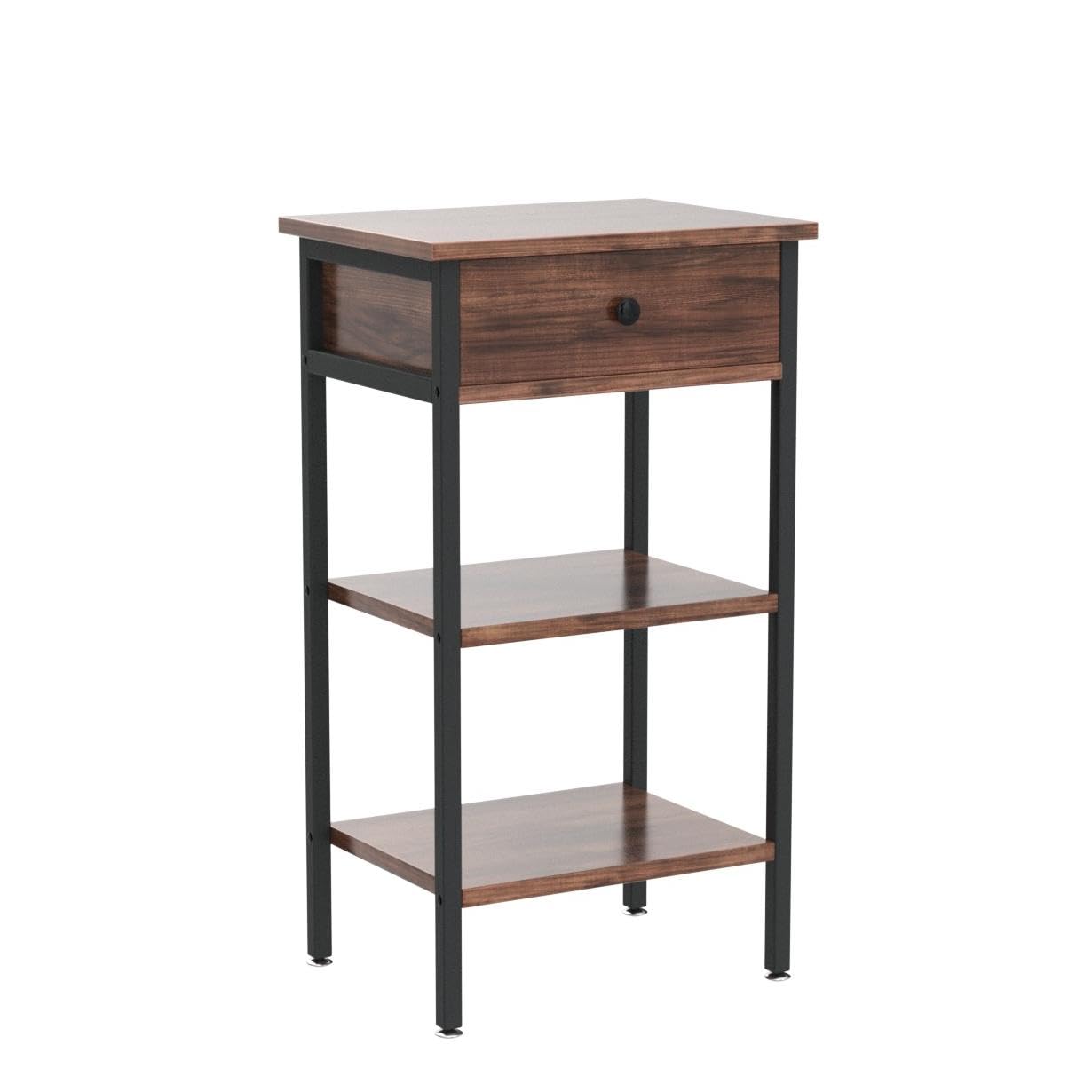 WLIVE Beistelltisch Klein, 2er Set, Nachttisch Schmal Mit Offenem Stauraum, Für Schlafzimmer, Wohnzimmer, Mit Metallrahmen, Vintagebraun-Schwarz