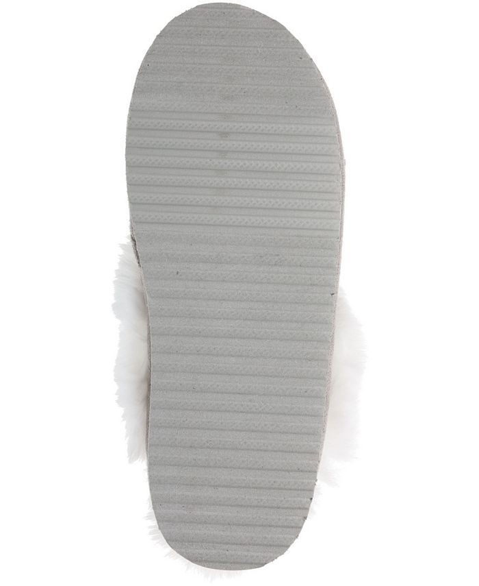 Ofoot Women's Ballerina Fluffy Knit Scuff Slippers, Cute Novelty Animal Face Anti-Slip Rubber Sole House Flat Shoes, Bear With Charcoal