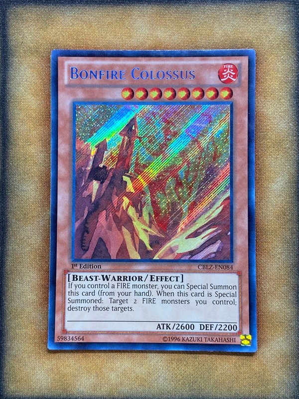 Yu-Gi-Oh! - Bonfire Colossus (CBLZ-EN084) - Cosmo Blazer - 1st A single individual card from the Yu-Gi-Oh! trading and collectible card game (TCG/CCG).;This is of Secret Rare rarity.;From the Cosmo Blazer set.;You will receive the 1st Edition version of this card ;This is of Secret Rare rarity. A single individual card from the Yu-Gi-Oh! ;You will receive the 1st Edition version of this card., Yu-Gi-Oh!