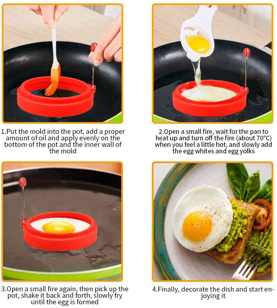 Omelette Ring, 4 Omelett Ring Aus Edelstahl, Runder Omelett Ring, Verwendet Für Omelett, Pfannkuchen, Omelett, Steak, Antihaft, Hitzebeständig, Mit 1 Silikonölbürste, 1 Verbrühschutz-Fingerclip