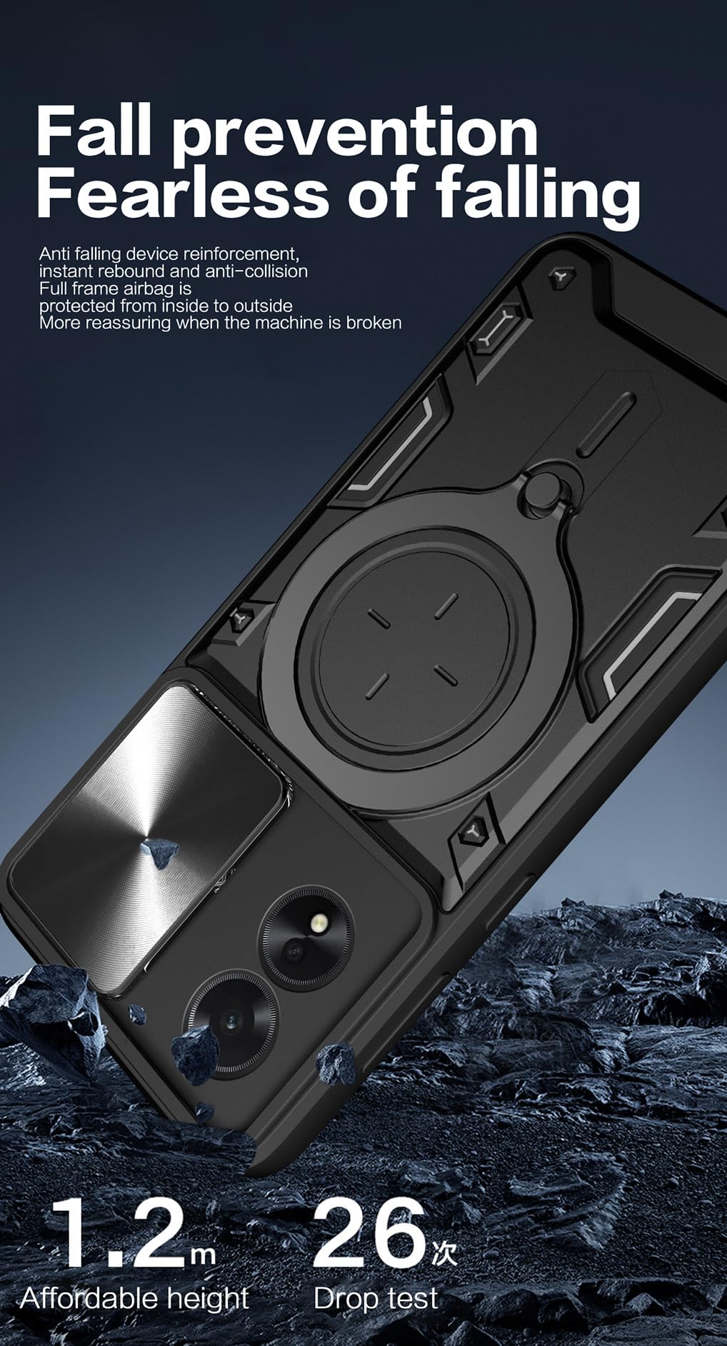 EASSGU Armor Hülle Für Oppo A18 / Oppo A38 , Harte PC Silikon Ringständer Handyhülle Mit Magnetfuß - Blau