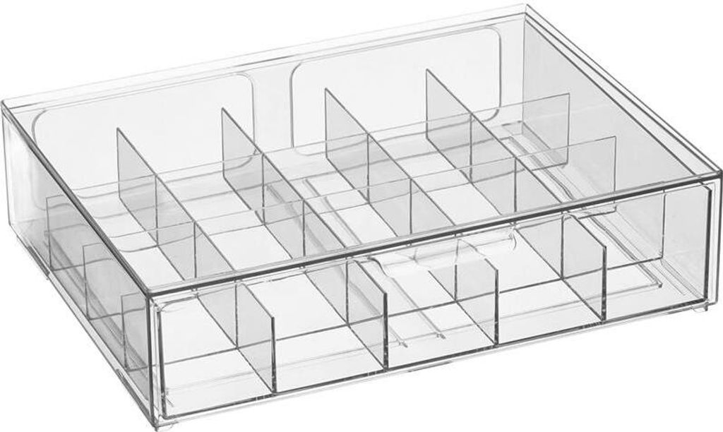 Pflegeleicht: Einfach mit einem feuchten Tuch zu reinigen, damit Ihre Organisationslösung frisch und ordentlich aussieht Verwandeln Sie Ihre Küchenorganisation mit diesem vielseitigen Getränkepaket-Organizer mit praktischem Drehteller-Design. Aufbewahrungsbehälter MultiStore, Anzahl Fächer: 9, Fachgröße: 49 x 45 Transparente Aufbewahrungsbox mit mehreren Fächern. Links größere Ablage, rechts 12 kleine Fächer. Ideal Transparenter Make-up-Organizer. 22x12x8 cm Schmuckschatulle Transparent 2 Stück Getränkepaket Organizer, 6 Fächer, Wasser Getränke Paket Halter Vorratsschrank Organizer Die Standardgröße bietet Platz für verschiedene Paketgrößen und ist somit eine ideale Wahl für vielbeschäftigte Haushalte, die eine organisierte und effiziente Kücheneinrichtung aufrechterhalten möchten. Kompakte Größe: 30,5 x 20,3 x 8,9 cm, ideal für die Maximierung des Stauraums in Schränken und Arbeitsplatten Die transparente Acrylkonstruktion macht es einfach, Ihre Gegenstände auf einen Blick zu finden, während das 5-teilige geteilte Aufbewahrungssystem hilft, Getränkemischungen, Snackpakete und Gewürze ordentlich sortiert zu halten. Praktische Funktionen: Das drehbare Design bietet bequemen Zugang zu allen Fächern, mit stabiler Konstruktion für den täglichen Gebrauch Mit den Maßen 30,5 x 20,3 x 8,9 cm passt dieser IIDEA Organizer perfekt in Ihre Speisekammer, Küchentheke, Kühlschrank oder Schrank. Verschiedene Behälter und Gestelle für ein übersichtliches und ordentliches Buffet sind ideal für Zuckerpäckchen, Kondensmilch oder portionierte Marm... Ob in der Küche, am Schminktisch, Schreibtisch, für Nähzeug oder Werkzeug.