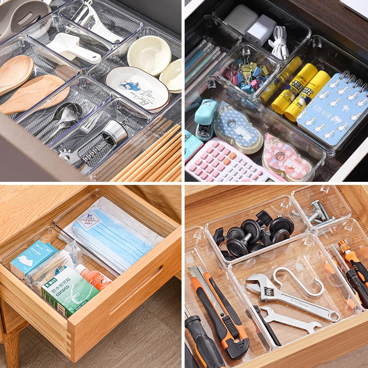 16 Stücke Schubladen Ordnungssystem Mit 5 Größen Schubladen Organizer Schreibtisch Organizer Schminktisch Organizer Klar Kunststoff Für Makeup, Küchen, Bad, Büro