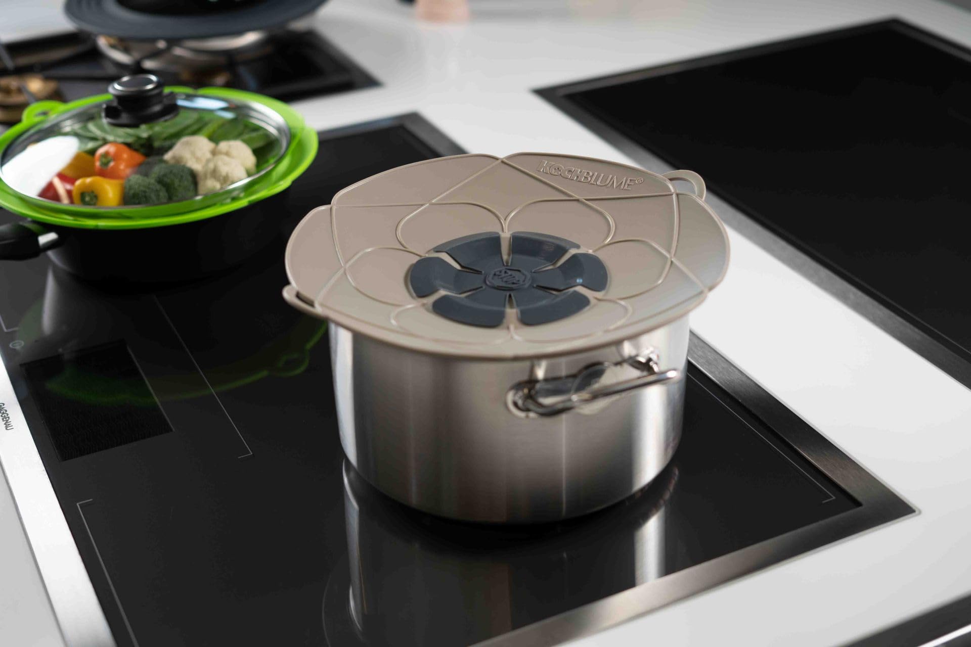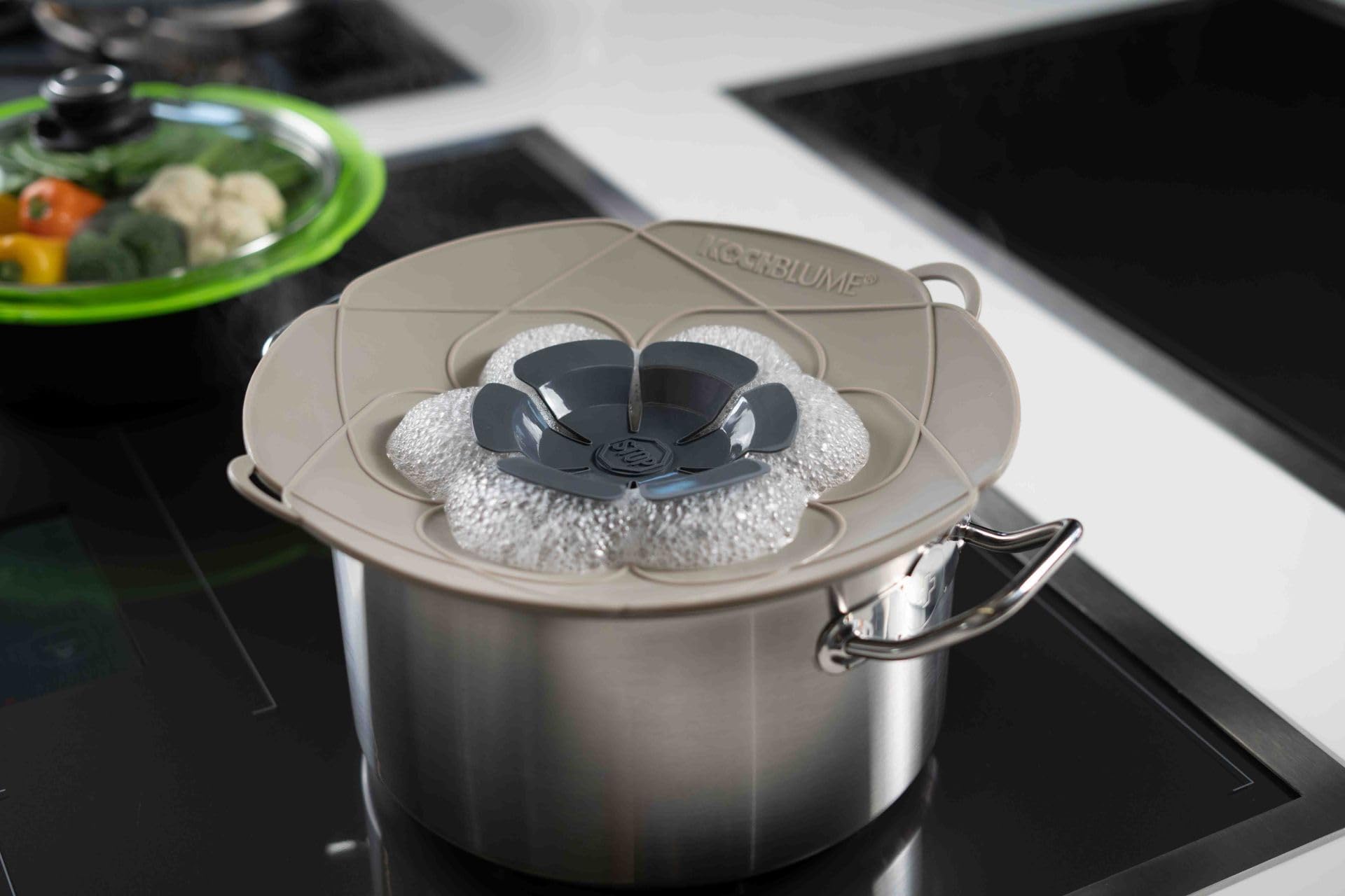 Kochblume – Der original Küchenhelfer in großer Auswahl im Angebot. Praktischer Überkochschutz für Töpfe jetzt auf bestellen und sparen Perfekter Spritzschutz Energisparen durch Kochkontrolle anhand der Blüte Spülmaschinen-, Backofen- und Mikrowellengeeignet Für Töpfe mit einem Durchmesser von 20-28 cm Material: 100% Lebensmittel-Silikon Die KOCHBLUME ist der erste Deckel der Welt, mit dem garantiert nie wieder etwas überkocht! Überkochen ist out - die Herdplatte bleibt sauber - die Putzmittel bleiben im Schrank Kochblume Kochen Kochblume Das Original, Silikon Kochblume das Original, Silikon Überkochschutz für Töpfe und Pfannen, Mikrowellen-Deckel, Spritzschutz und Dampfgar-Aufsatz | (anthazit, M | Topfgröße 14-20cm) ab 24,95 € - auf