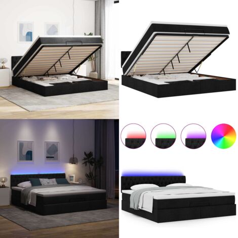 VidaXL Ottomane Bett Mit Matratze & LEDs Schwarz 180x200 Cm Stoff