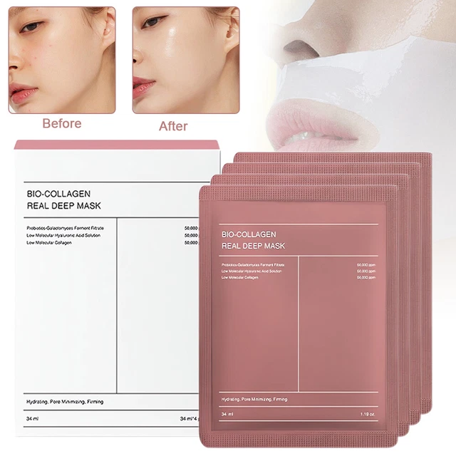 Maske Gesicht Miioto Collagen Mask Overnight, 4 Stück Bio-Collagen Real Deep Mask Face Off Geeignet für alle Hauttypen: bio kollagen maske ist für alle Hauttypen geeignet, egal ob trockene, fettige oder Mischhaut, Sie können es sicher verwenden, um Hautprobleme zu verbessern. Der lösliche Film verschmilzt mit der Haut und liefert wirksame Pflegestoffe, während Sie ruhen Reparatur der Barriere: Stärkt die Barrierefunktion der Haut und reduziert Schäden an der Haut, die durch äußere Einflüsse verursacht werden. Hoher Kollagengehalt: Die Kollagenmaske ist reich an Kollagen, Nach 30–40 Minuten werden die Nährstoffe der Maske von der Haut aufgenommen und die Maske wird allmählich dünner, das tief in die untere Hautschicht eindringen kann, die Haut ausreichend mit Nährstoffen versorgt und die Haut straffer und elastischer macht. Träumst du von einer Haut, die sich so glatt und prall anfühlt wie nach einer professionellen Behandlung? Die Biodance Bio Collagen - Real Deep Mask ist dein Geheimnis für eine jugendlich strahlende Haut über Nacht Kollagen 75ml Gesichts masken applikator für komfortable Gesichts reinigung und Hautton Aufhellen: Die langfristige Anwendung von Kollagenmasken kann den Hautton effektiv aufhellen und Mattheit verändern, wodurch die Haut strahlender und durchscheinender wird. Beruhigende Haut: Die Kollagenmaske enthält eine Vielzahl von Pflanzenextrakten, die die Haut wirksam beruhigen, Hautermüdung reduzieren und die Haut weicher und angenehmer machen können.