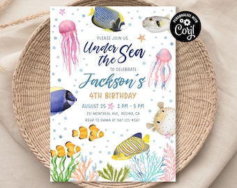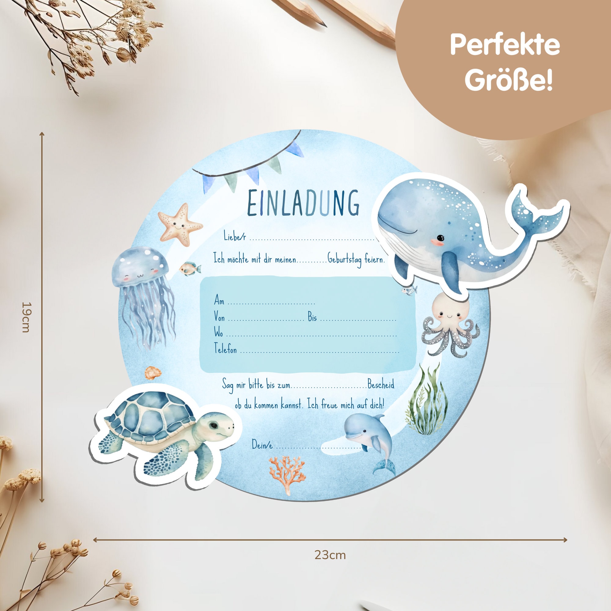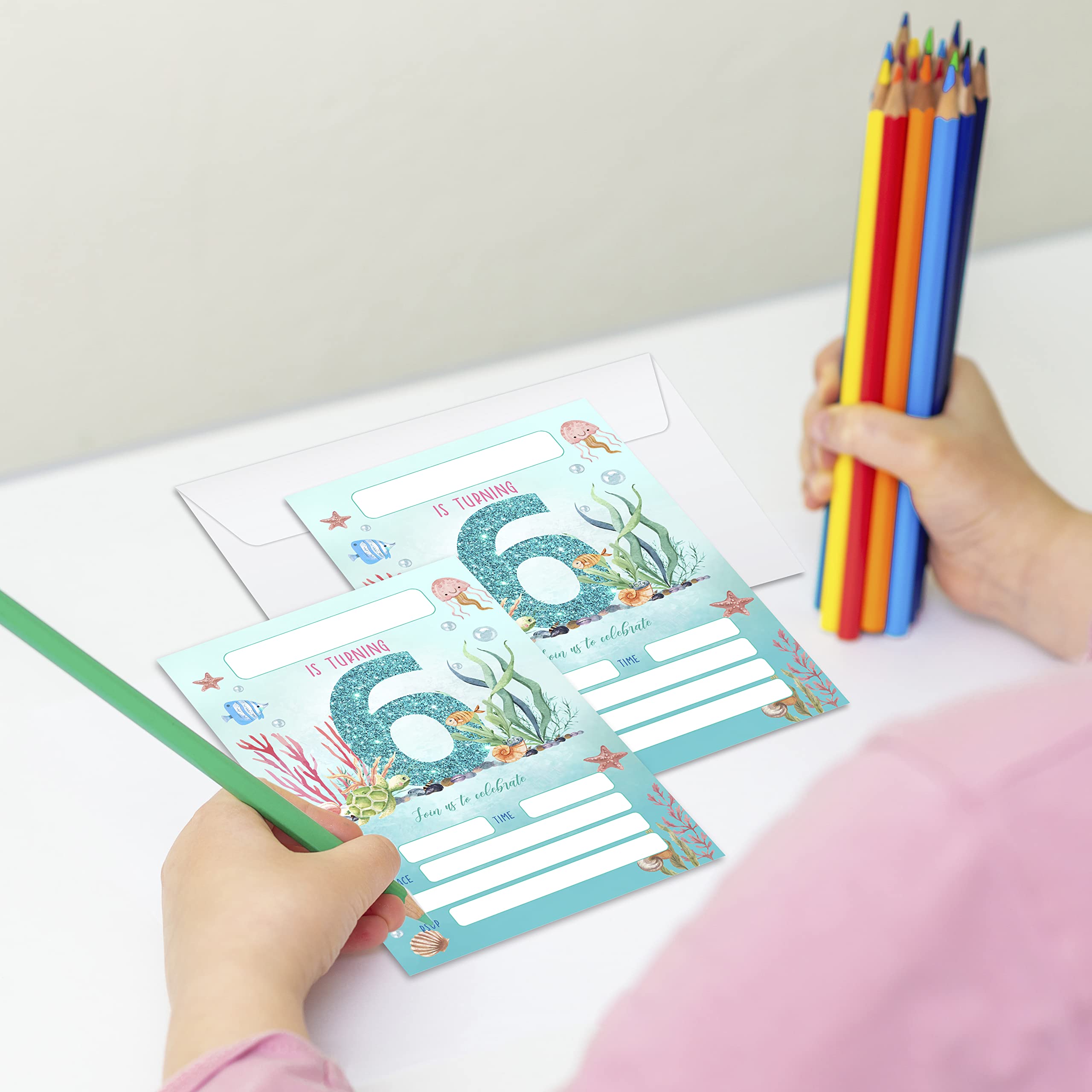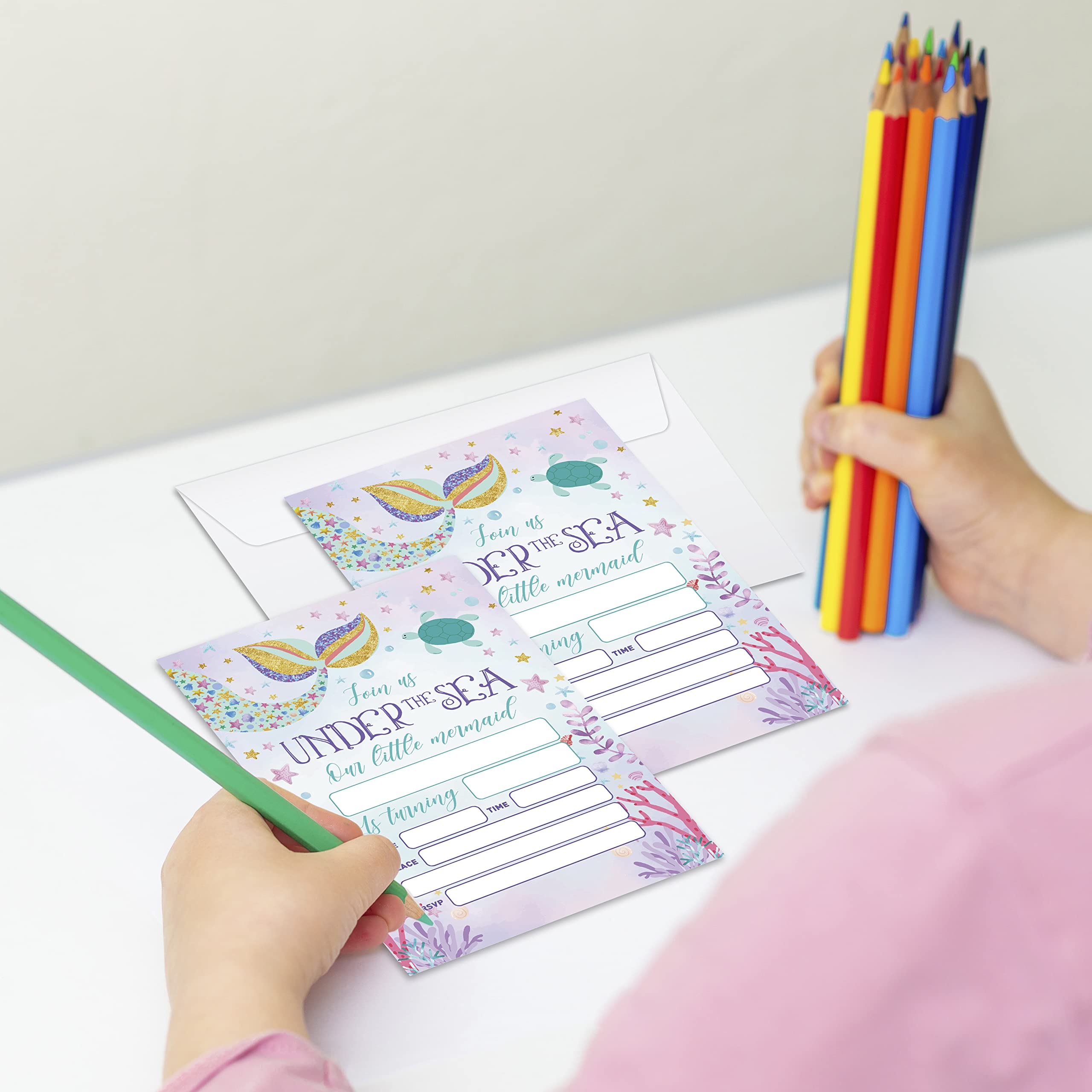 RLCNOT Geburtstagseinladungskarten Mit Umschlägen, 20 Stück, Aquarell-Ozean Unter Dem Meer, Meerjungfrau, Geburtstagsparty-Einladungen Für Kinder, Jungen Oder Mädchen, Feier, Zubehör/BDAY075