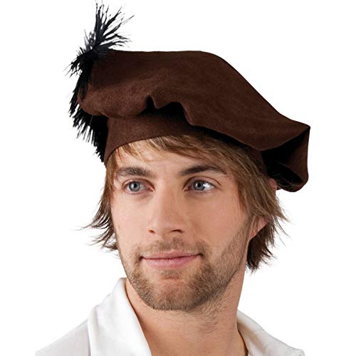 PARTY DISCOUNT® Hut Mittelalter Barett, Braun Mit Feder
