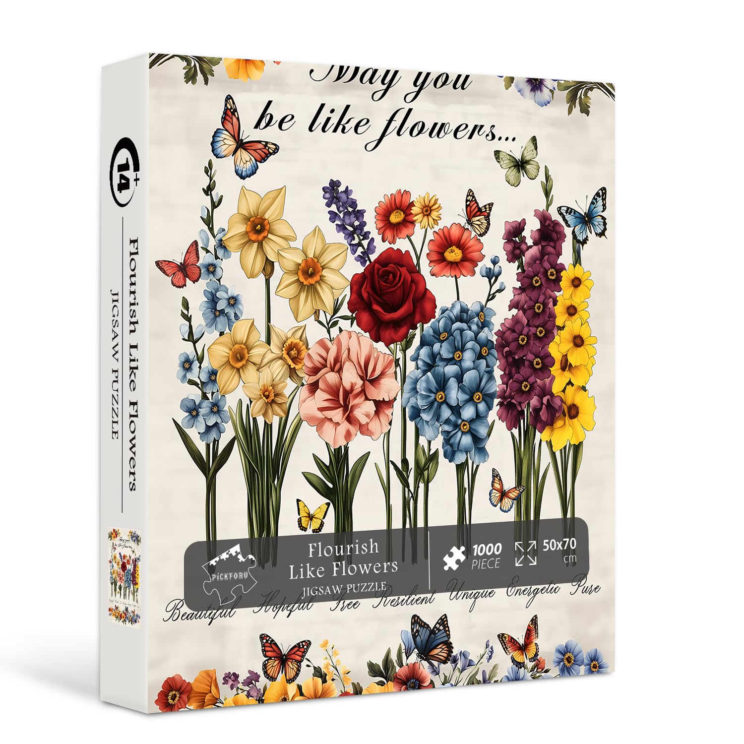 Blumen 1000 Teile Puzzles Für Erwachsene, PICKFORU Vintage Pflanze Blumen Puzzle Schmetterling, Herausfordernd Hart, Einzigartige Inspirierende Zitate Thema Als Wanddekoration 315023130