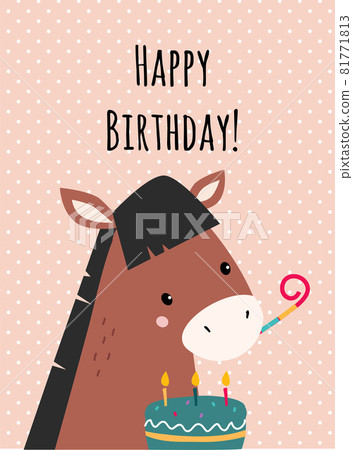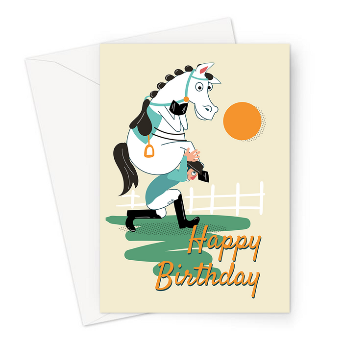 HAPPY BIRTHDAY HORSE & PONIES HUMOUR CARTOON A5 GREETING CARD BY